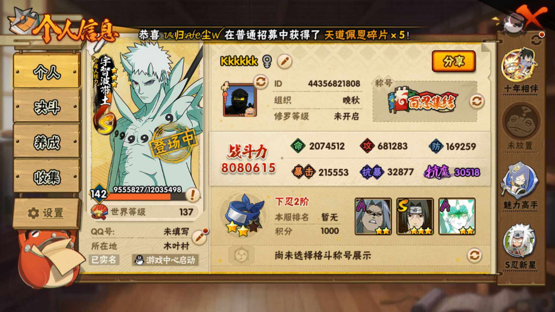 v4 808万战力 8S 21A 4300金币 zp3576【S级忍者】:宇