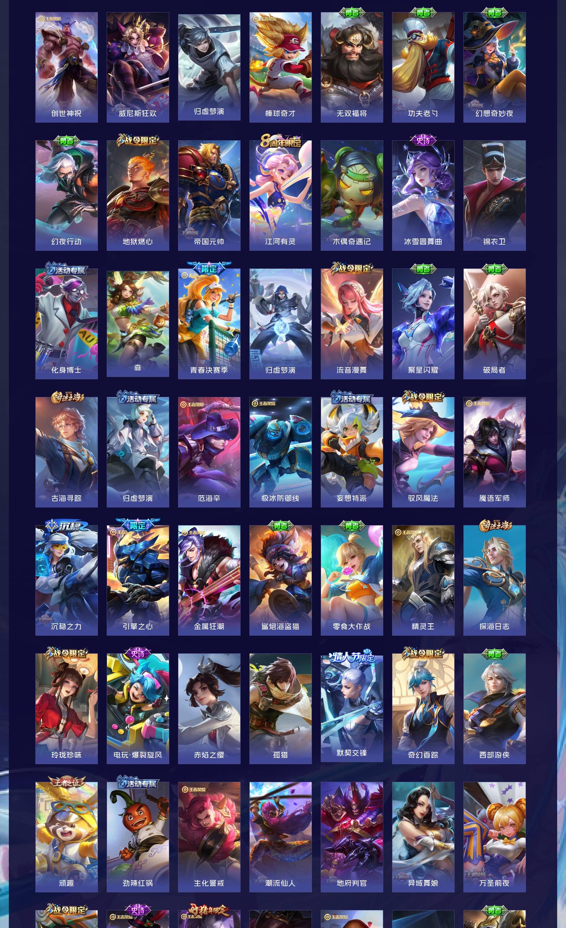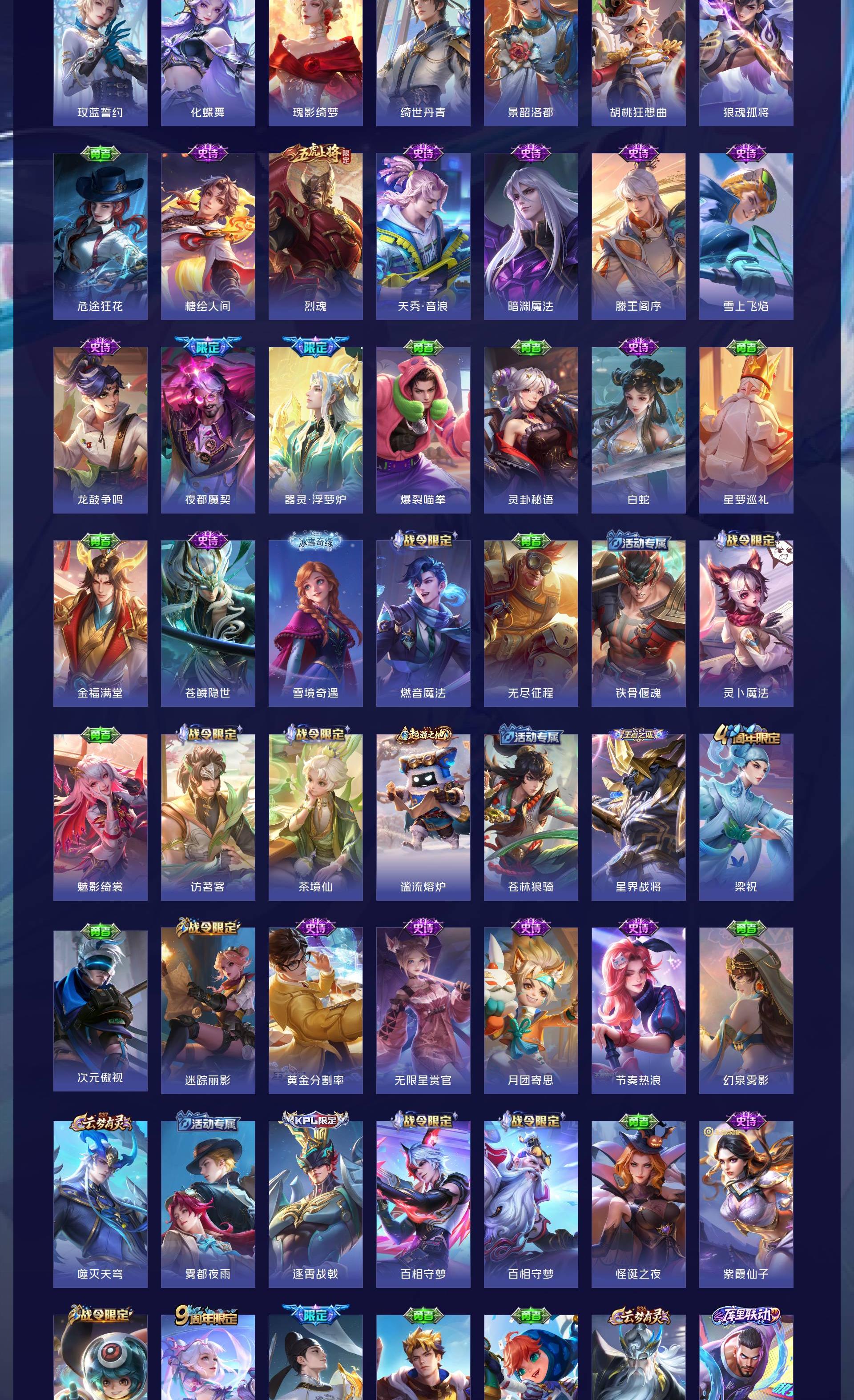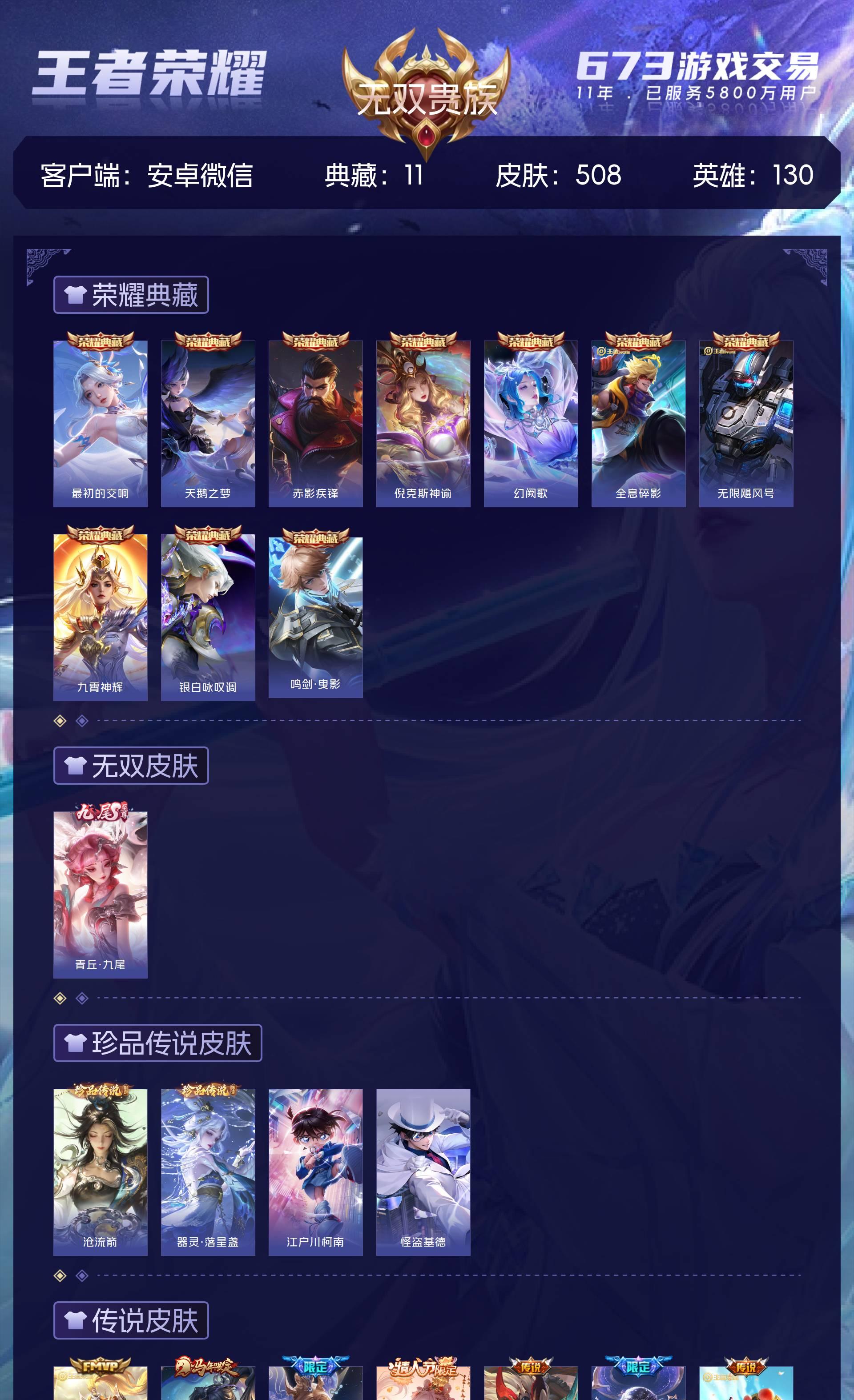 无双贵族 皮肤508 英雄130 荣耀黄金 荣耀典藏11 无双皮肤1 珍品传说4 传说45