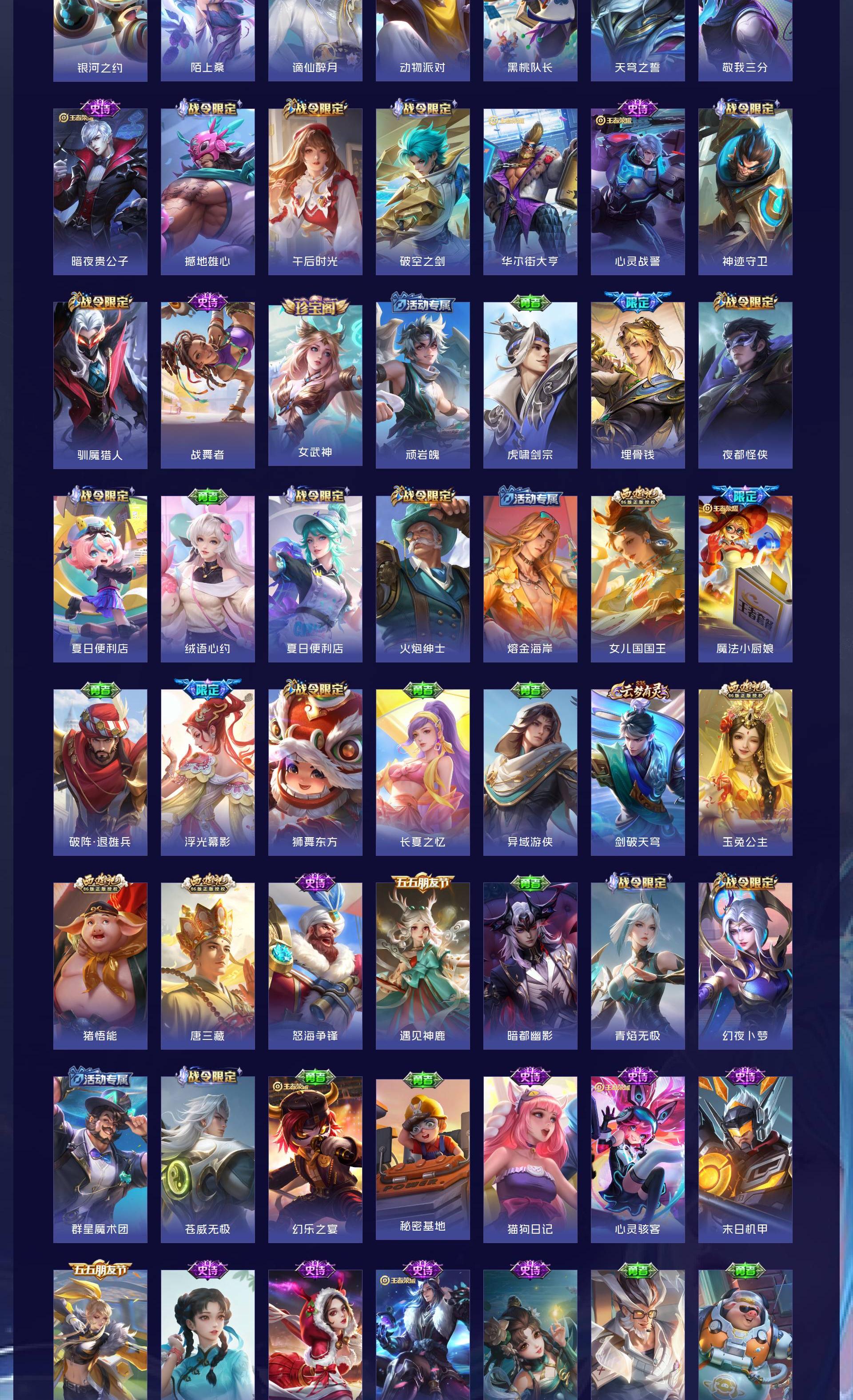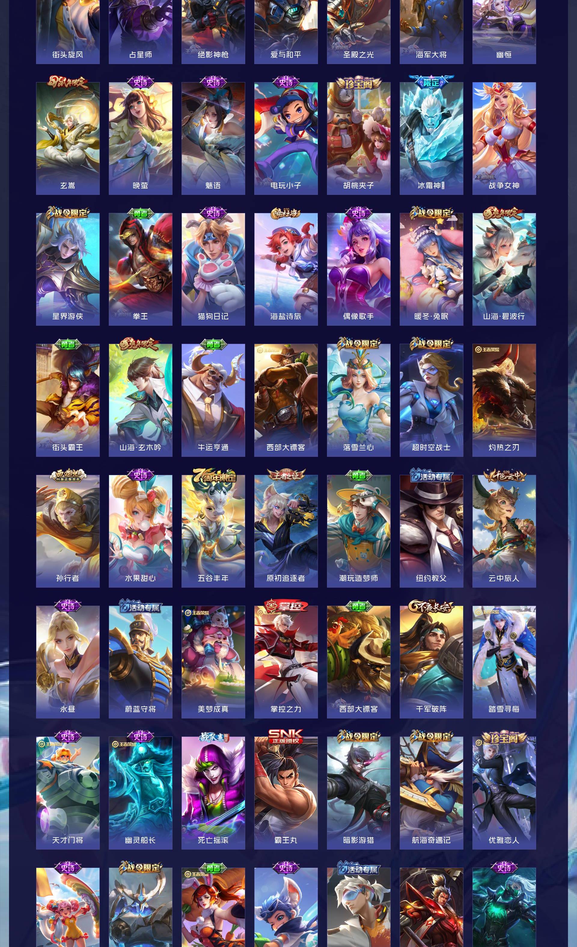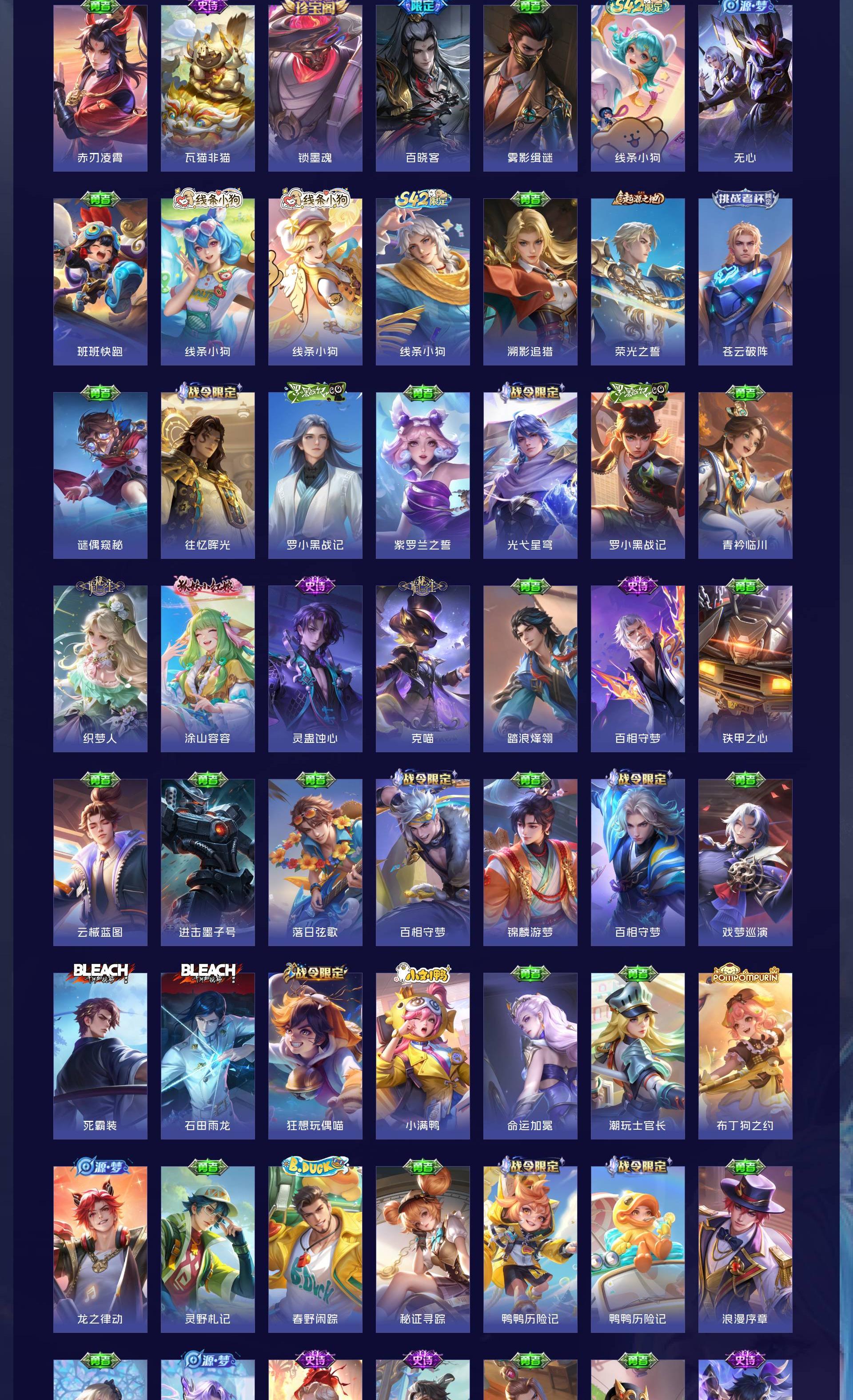 无双贵族 皮肤508 英雄130 荣耀黄金 荣耀典藏11 无双皮肤1 珍品传说4 传说45