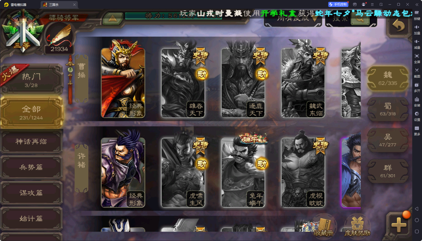骠骑v1,247武将,4神将:神吕蒙,神周瑜,神吕布,神司