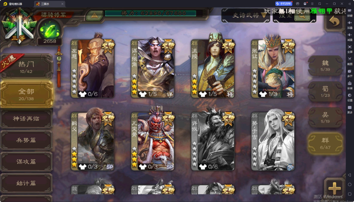 骠骑v5,274武将,5神将:神吕蒙,神周瑜,神赵云,四星
