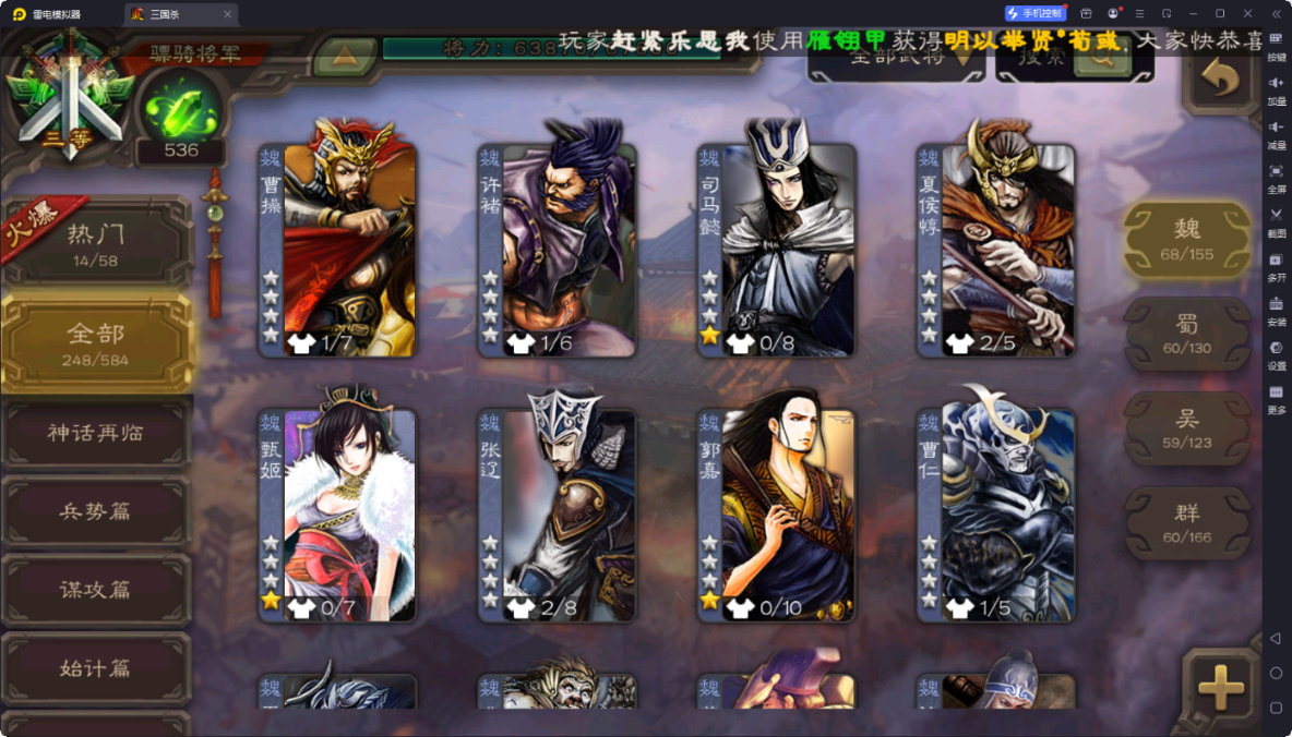 V8骠骑,248武将,21史诗:神吕布,动皮神赵云,界钟会