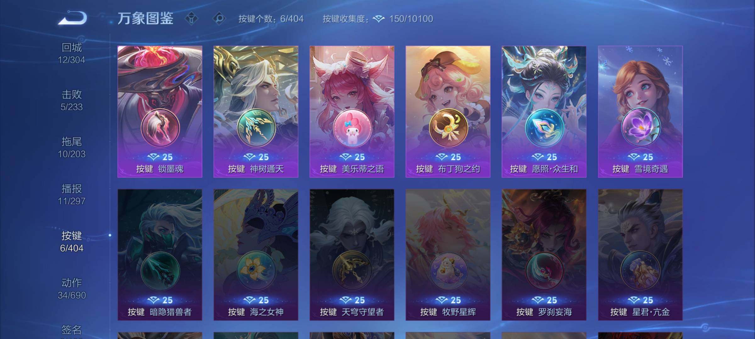 【限定皮肤】:姜子牙天穹之誓,狄仁杰阴阳师,妲己热情桑巴,妲己时之彼端,孙尚香蔷薇恋人,庄周高山流