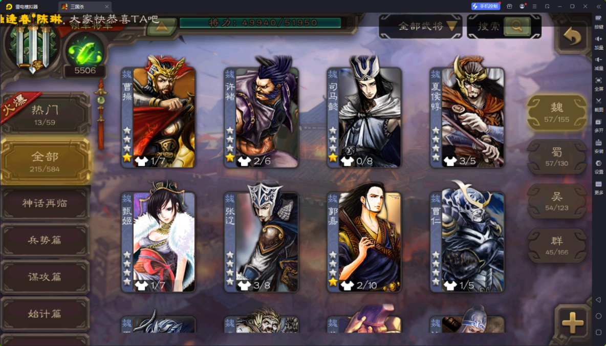 领军v6,215武将 ,4神将:神吕布,四星神赵云(战龙在