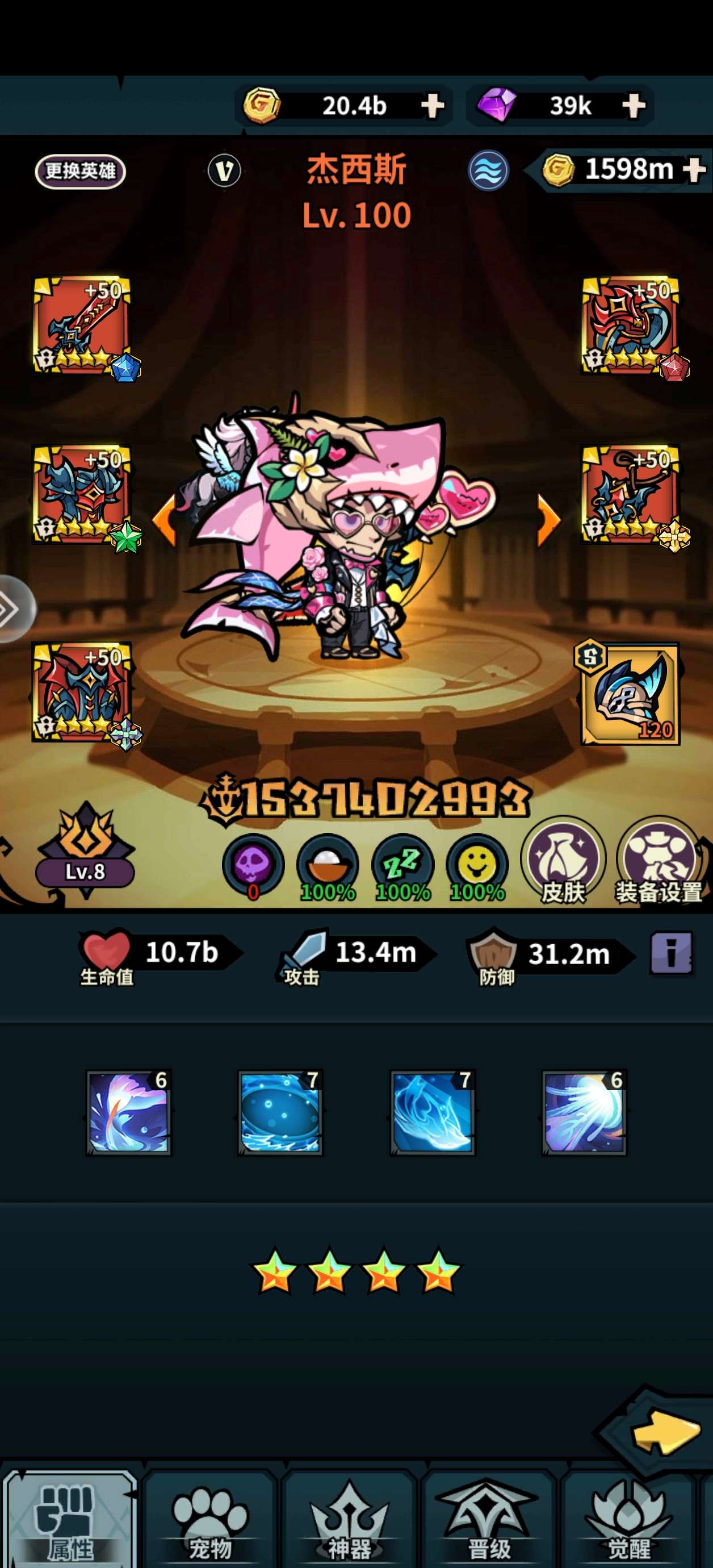 300区,四卡全开,五套四阶套装,高觉醒