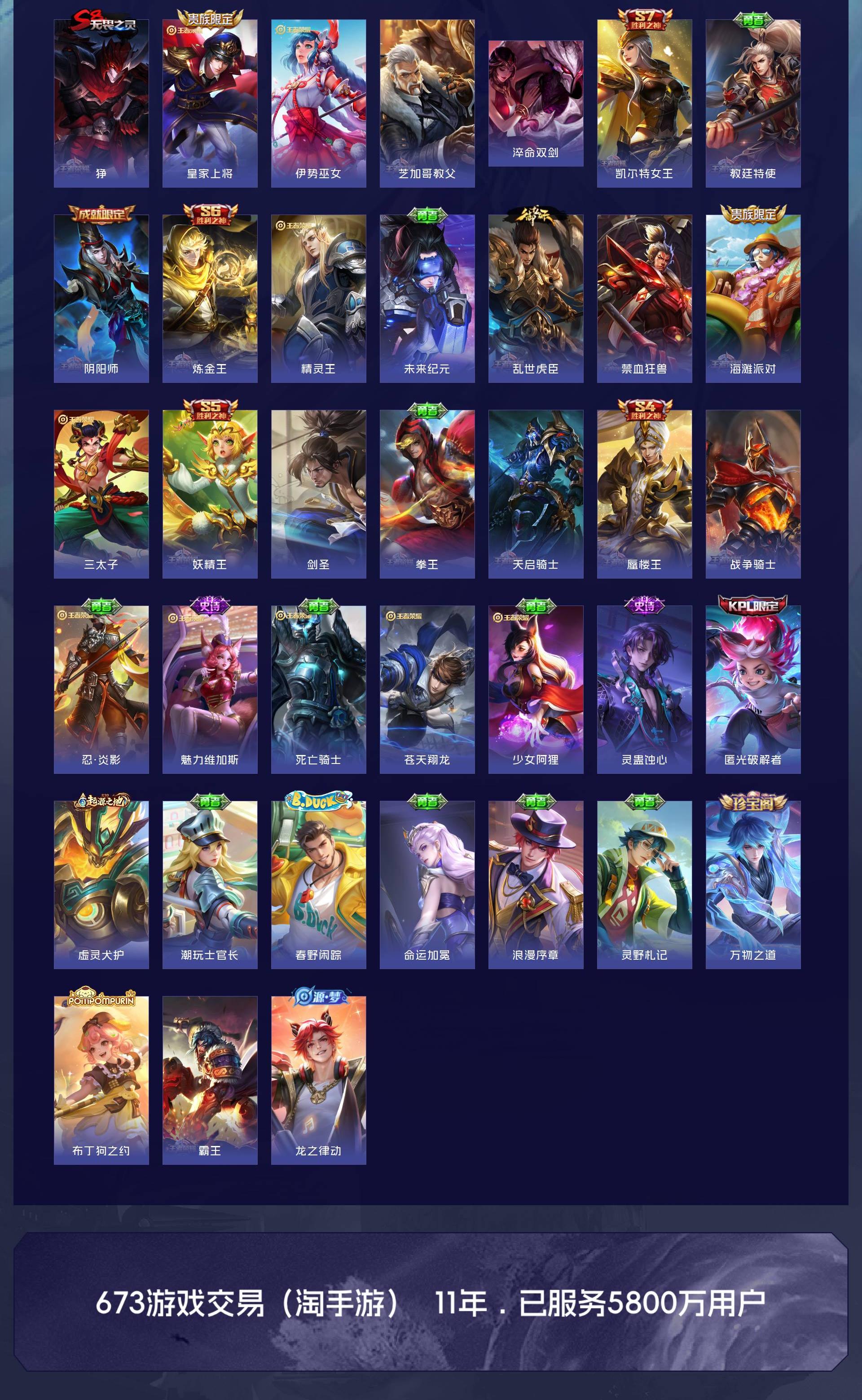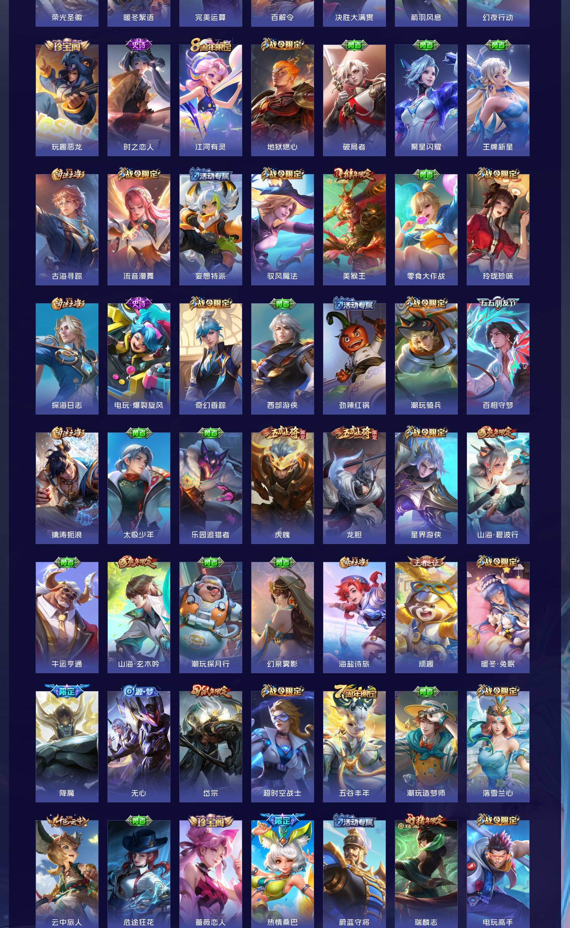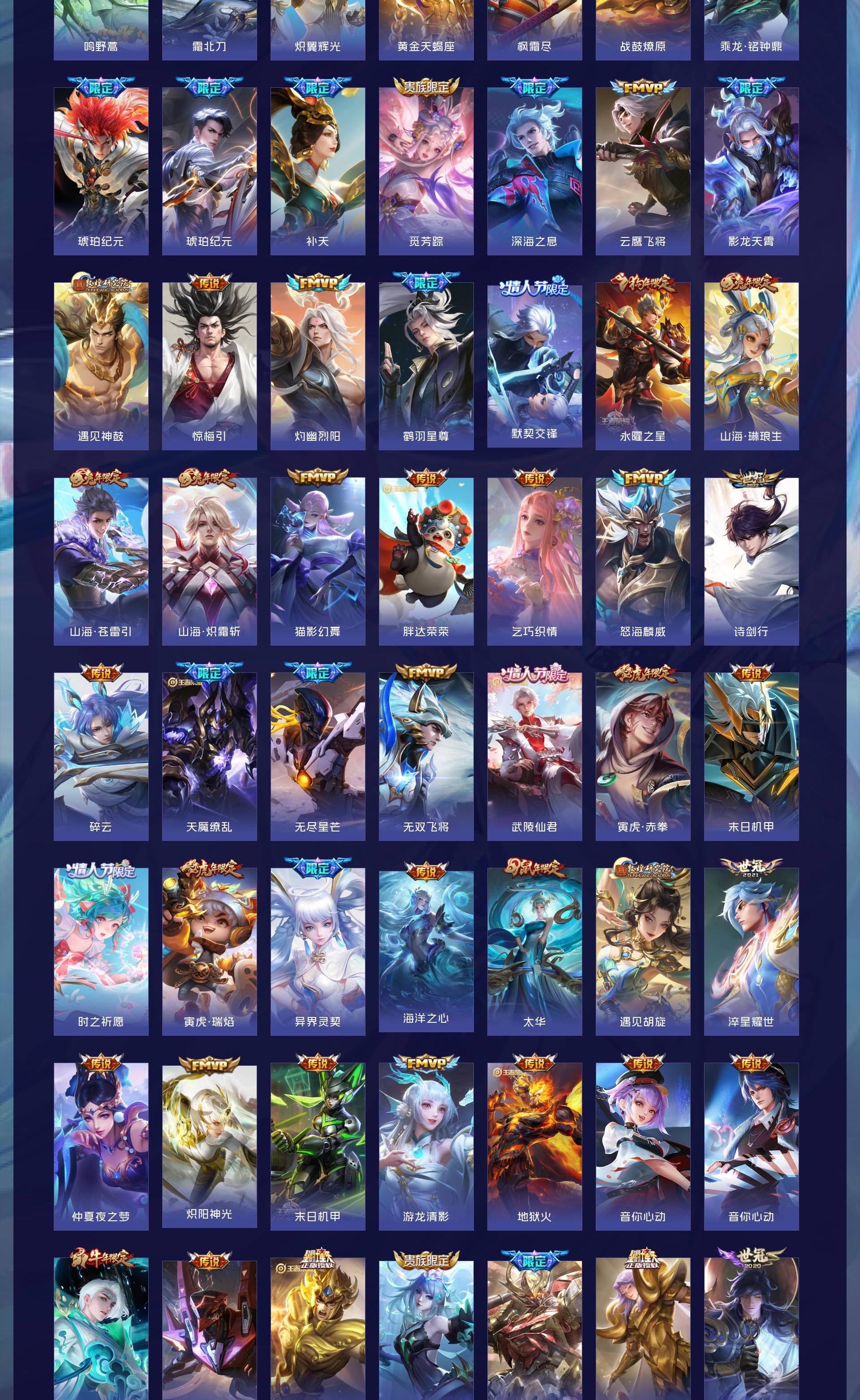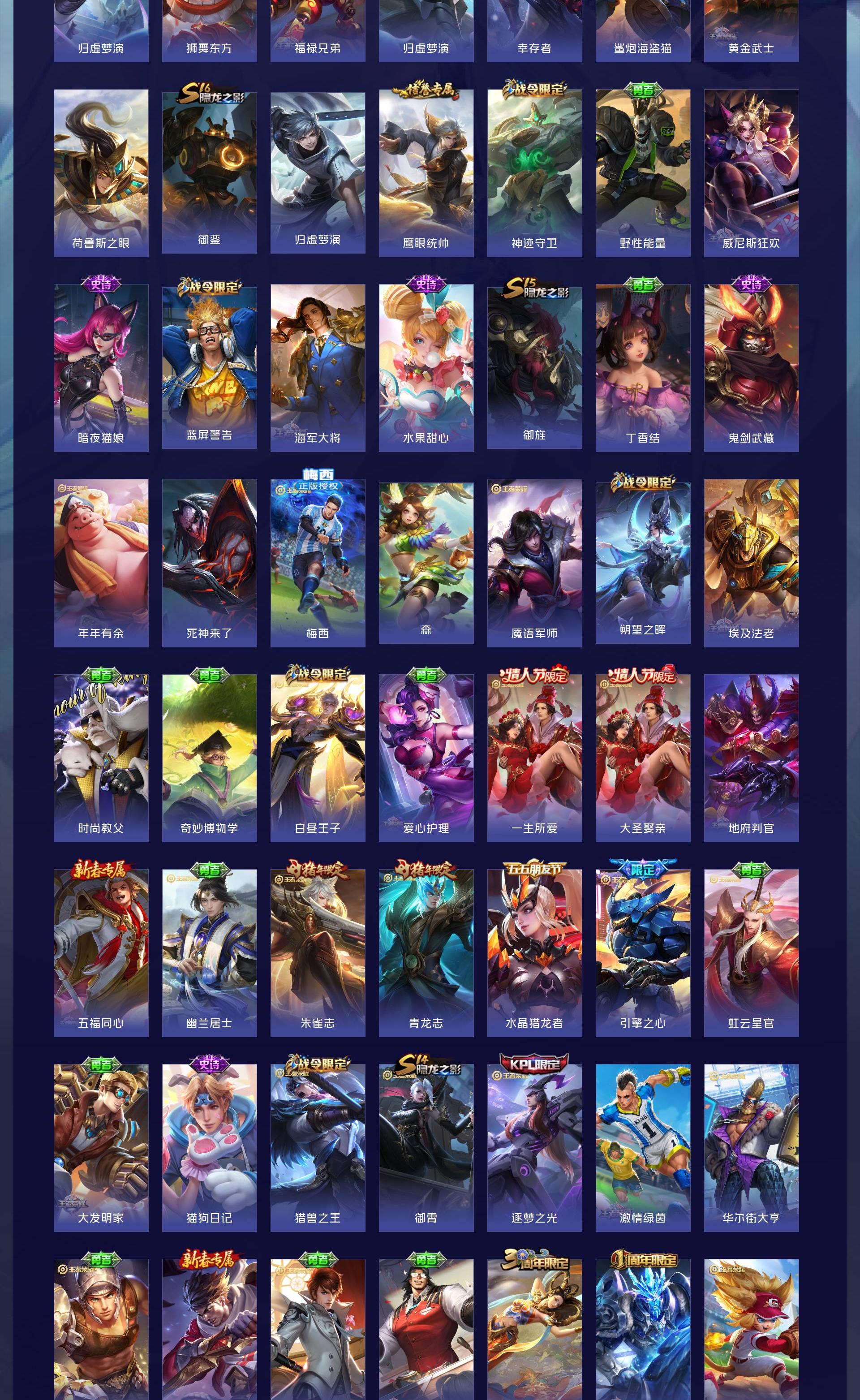V10 皮肤560 英雄130 至尊星耀 荣耀典藏11 无双皮肤1 传说71