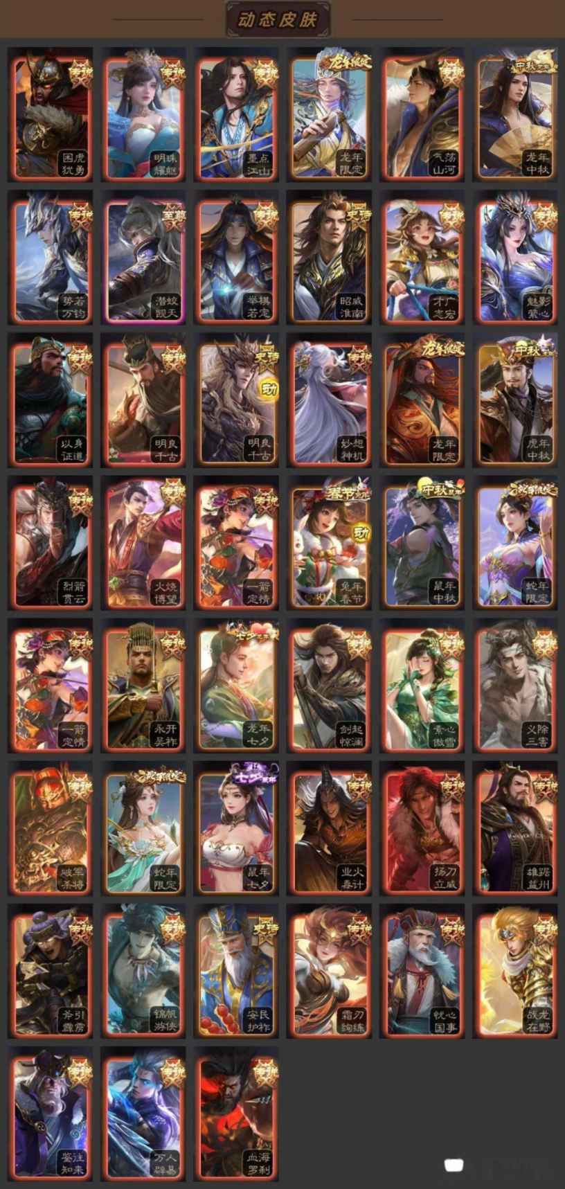 VIP11大将军,346武将,472皮肤,48动皮,48史诗武将:五星文鸯、四星刘焉、四星曹髦、四星界钟会、四星神司马懿、四星神赵云、四星谋诸葛亮、傅佥、兀突骨、关索、势于吉、势辛宪英、势陆郁生、司马昭、周处、嵇康、左慈、张琪瑛、张让、戏志才、星周不疑、星甘宁、星董卓、星黄忠、曹婴、曹纯、杨修、沙摩柯、沮授、界左慈、界徐盛、界曹真、界朱然、界李儒、界黄忠、神周瑜、神张辽、程昱、花鬘、谋关羽、谋