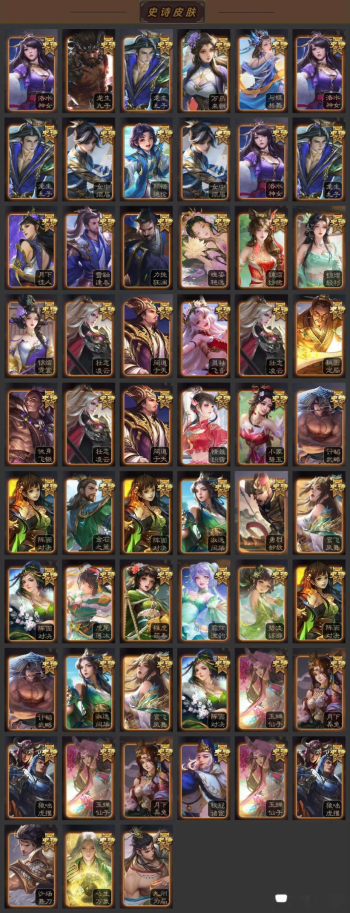 VIP9骠骑将军,303武将,346皮肤,27动皮,1史诗宝珠,31史诗武将:五星文鸯、四星司马昭、四星曹髦、四星界徐盛、四星谋诸葛亮、兀突骨、势辛宪英、势陆郁生、周处、张让、戏志才、星董卓、曹婴、曹纯、沙摩柯、清河公主、界朱然、界李儒、界钟会、留赞、神吕布、神吕蒙、神周瑜、神太史慈、神张辽、神赵云、程昱、花鬘、诸葛瞻、谋赵云、谯周、赵襄、马云騄 李傕、星徐晃 战龙在野·神赵云、素心傲雪·势陆