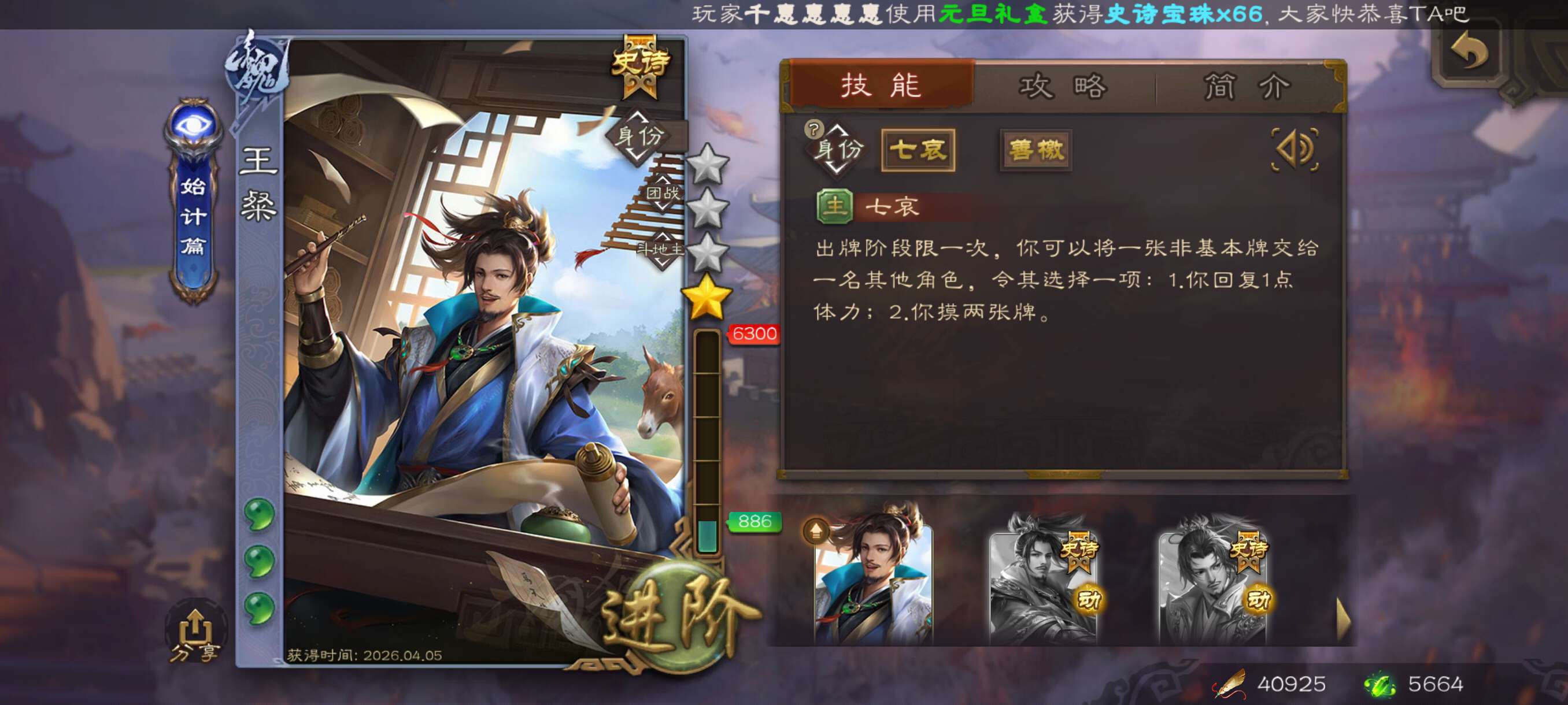 史诗武将数量: