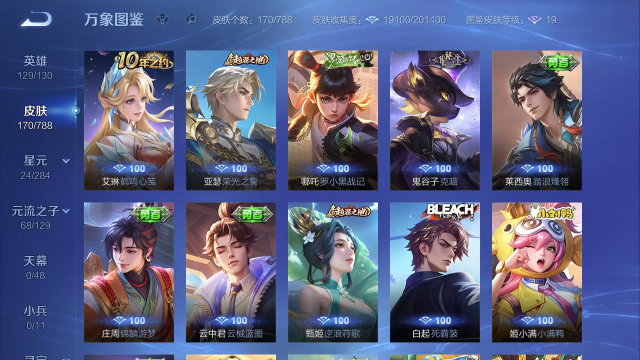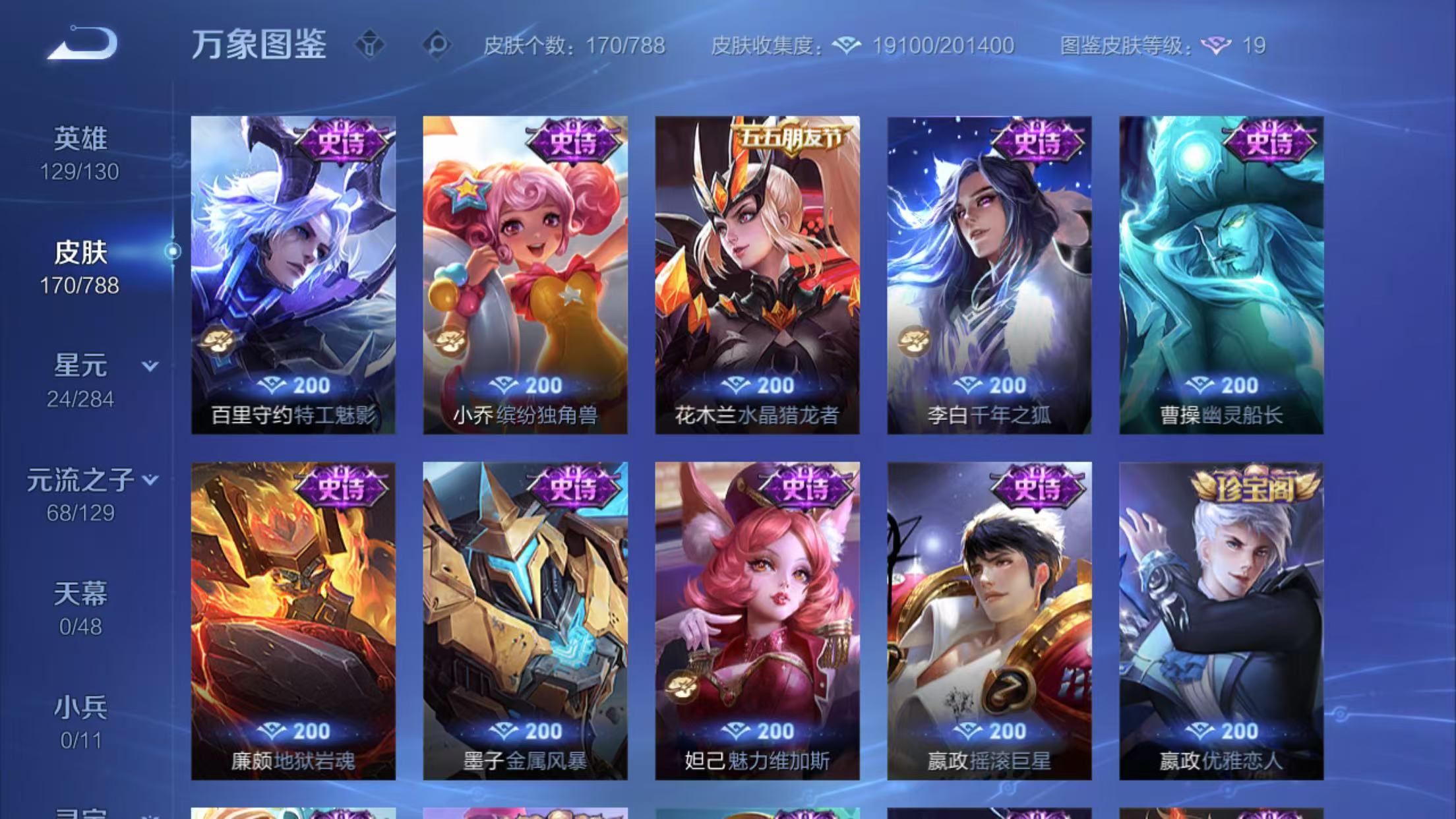 除武则天没有其他的英雄都有,皮肤比较多,重复的少,玩了好多年了,限定皮肤活动的有