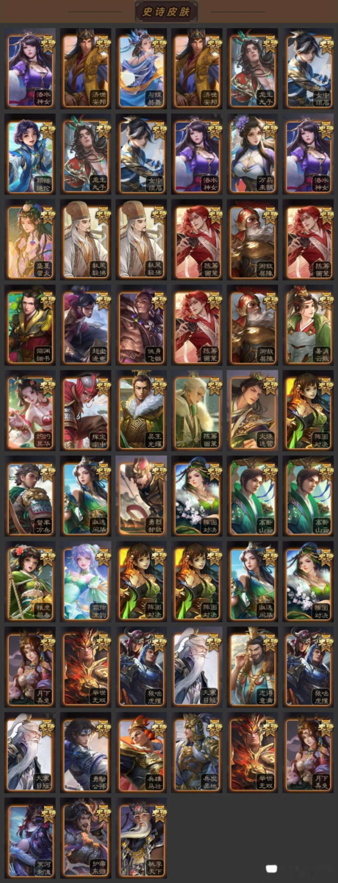 VIP8骠骑将军,286武将,348皮肤,21动皮,79史诗宝珠,28史诗武将:四星司马昭、四星文鸯、四星界徐盛、四星神赵云、兀突骨、左慈、张星彩、戏志才、星董卓、曹婴、曹纯、沙摩柯、王元姬、界左慈、界朱然、界李儒、神吕布、神吕蒙、神周瑜、神鲁肃、程昱、花鬘、裴秀、许攸、谋张角、谋赵云、谋马超、谯周、郝昭、麹义 谋张飞、谋黄月英、李傕、星徐晃、友徐庶 举棋若定·戏志才、婆娑起舞·王元姬、扬刀立