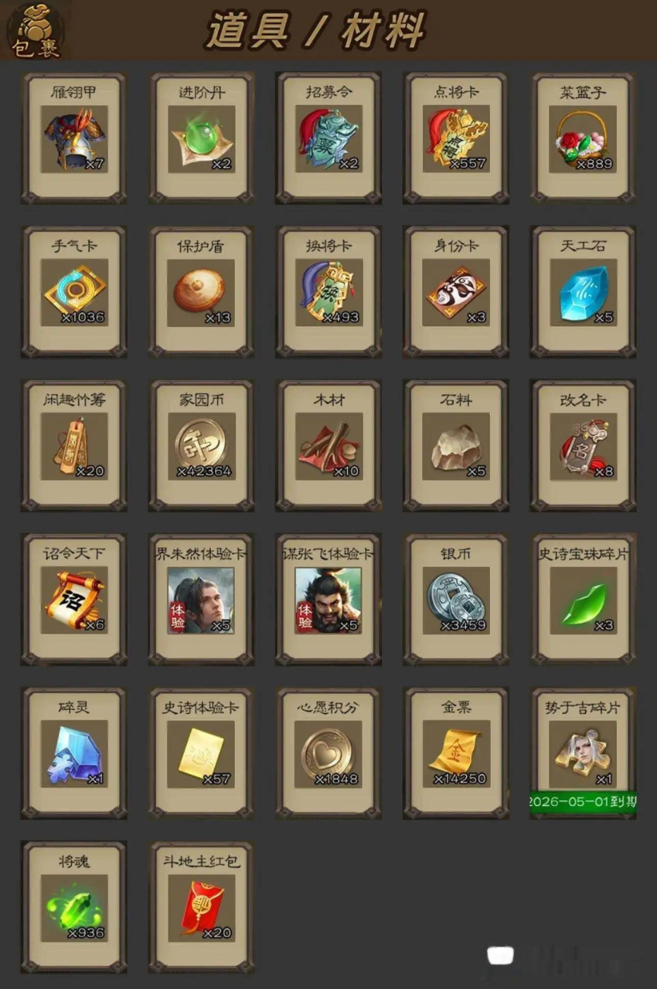 VIP3校尉,热门武将:势魏延,曹婴,精品武将:董昭,势田丰。135武将,95皮肤,1动皮,2史诗武将:势魏延、曹婴,557点将卡,493换将卡,1036手气卡