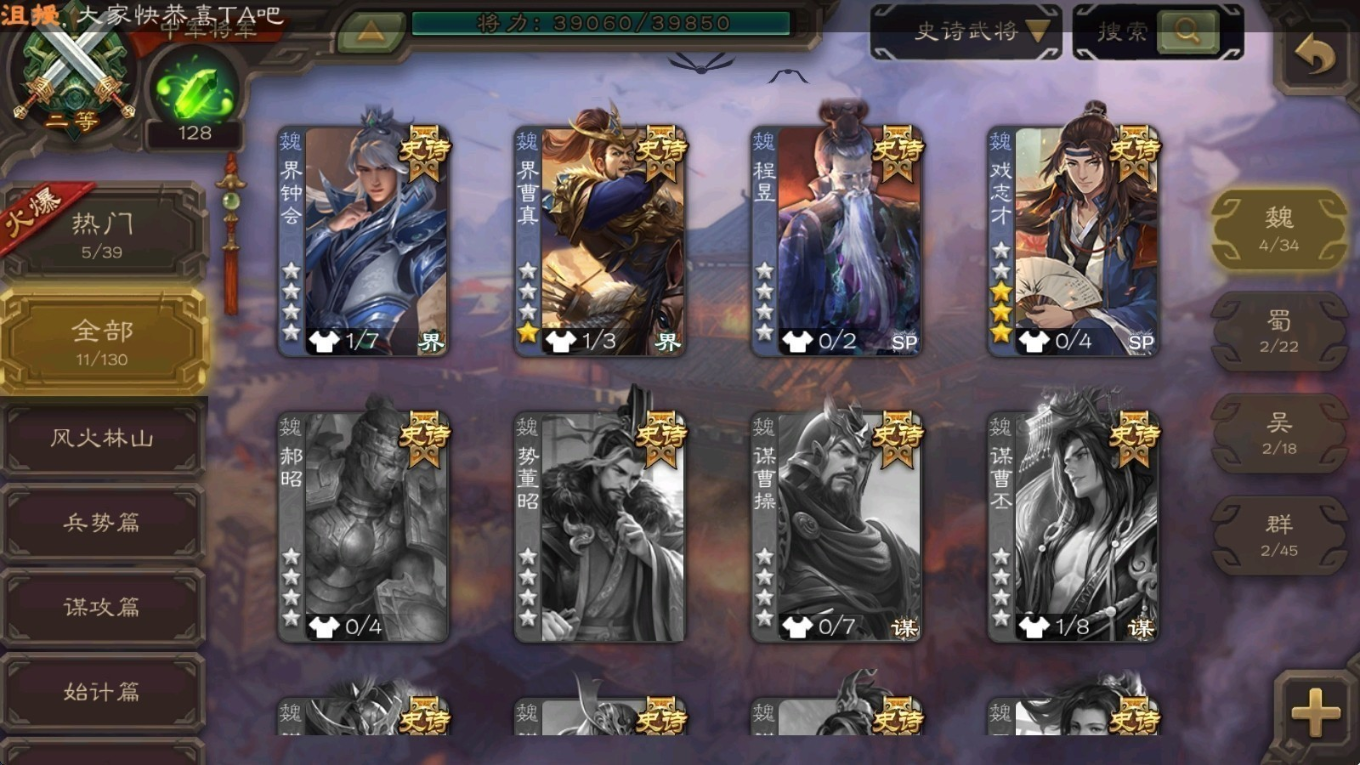 官阶分类:中军将军;账号亮点:182武将、2神将、56国战