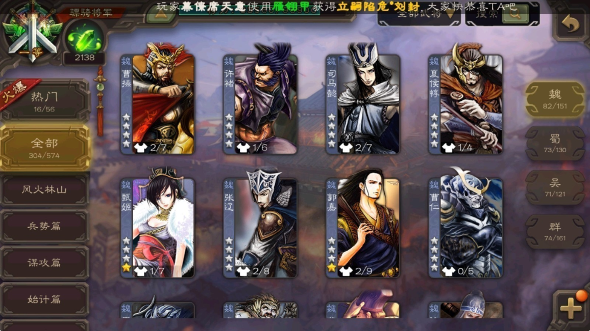 VIP8骠骑,304武将,5神将,85国战,26史诗武将,