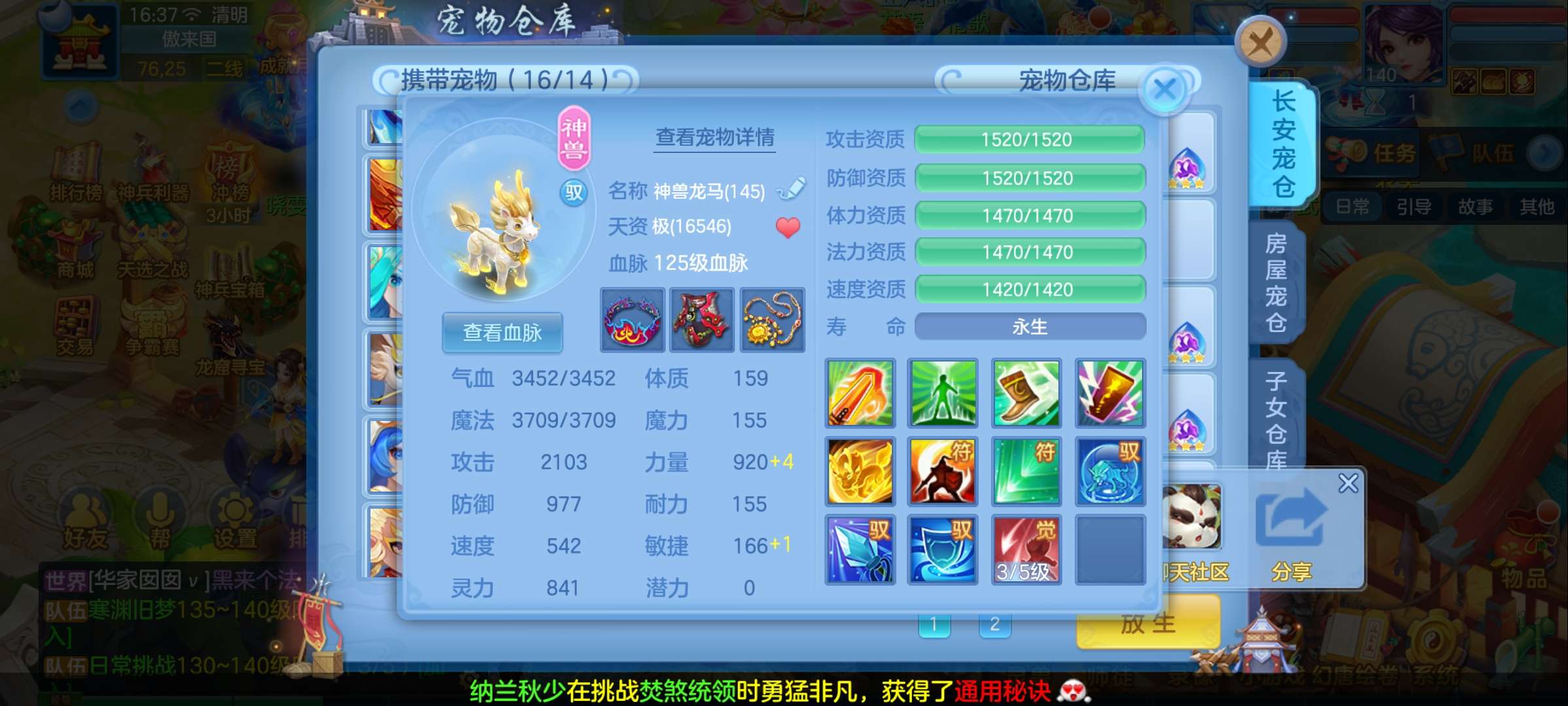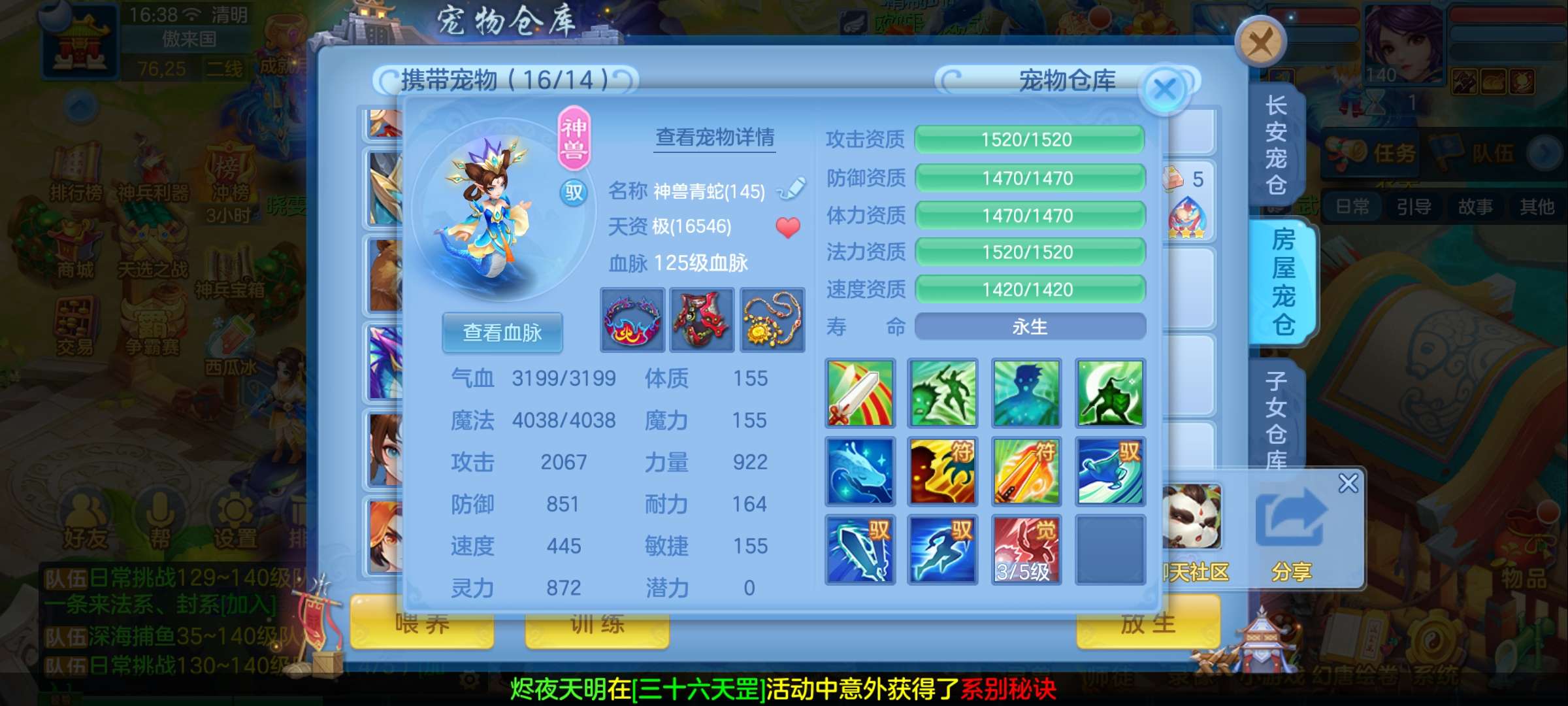 笑傲江湖飞升140盘丝,3内丹神兽愤怒易精准易净心迅捷鞋,上手即玩无需投入
