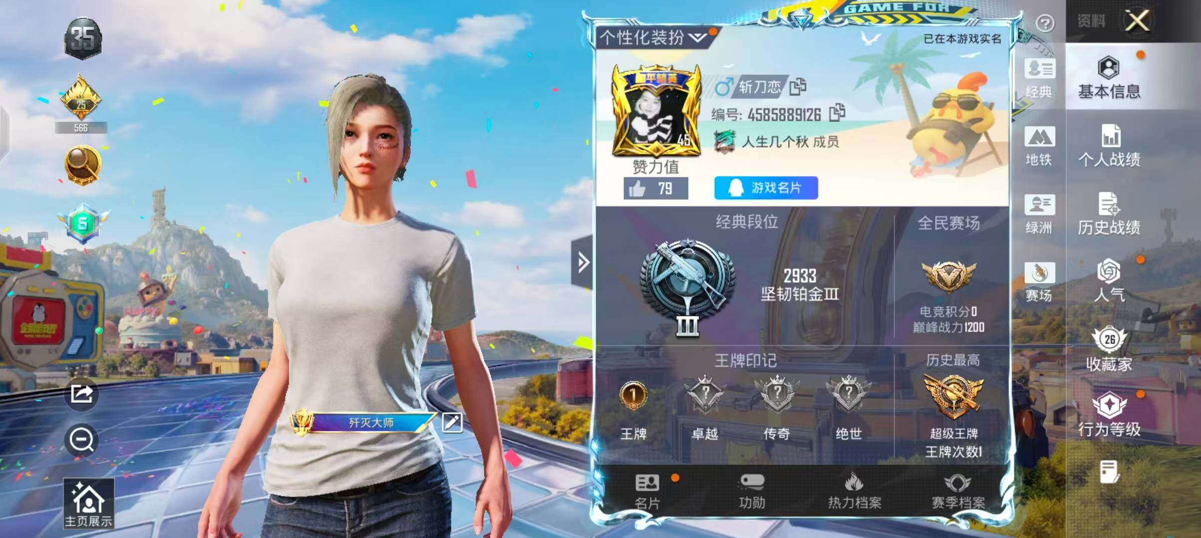 【FK6882】55套装/枪械2/装备65/战备45/王牌印记1/热力值16415/五级Kar98K-巳巳如意/五级DP-28-豹影疾电/小丑鱼/Kar98K-巳巳如意/DP-28-豹影疾电/炫彩糖果飞行器/六号石头人降落伞/第五大道降落伞/异瞳寒姬降落伞/炫彩糖果降落伞/巳巳如意/套装-炫彩糖果/套装-迅捷龙虾/套装-霓虹热舞/角色-紫俏灵猫/AKM-破晓战魂/M16A4-幻世战舞者/SCAR
