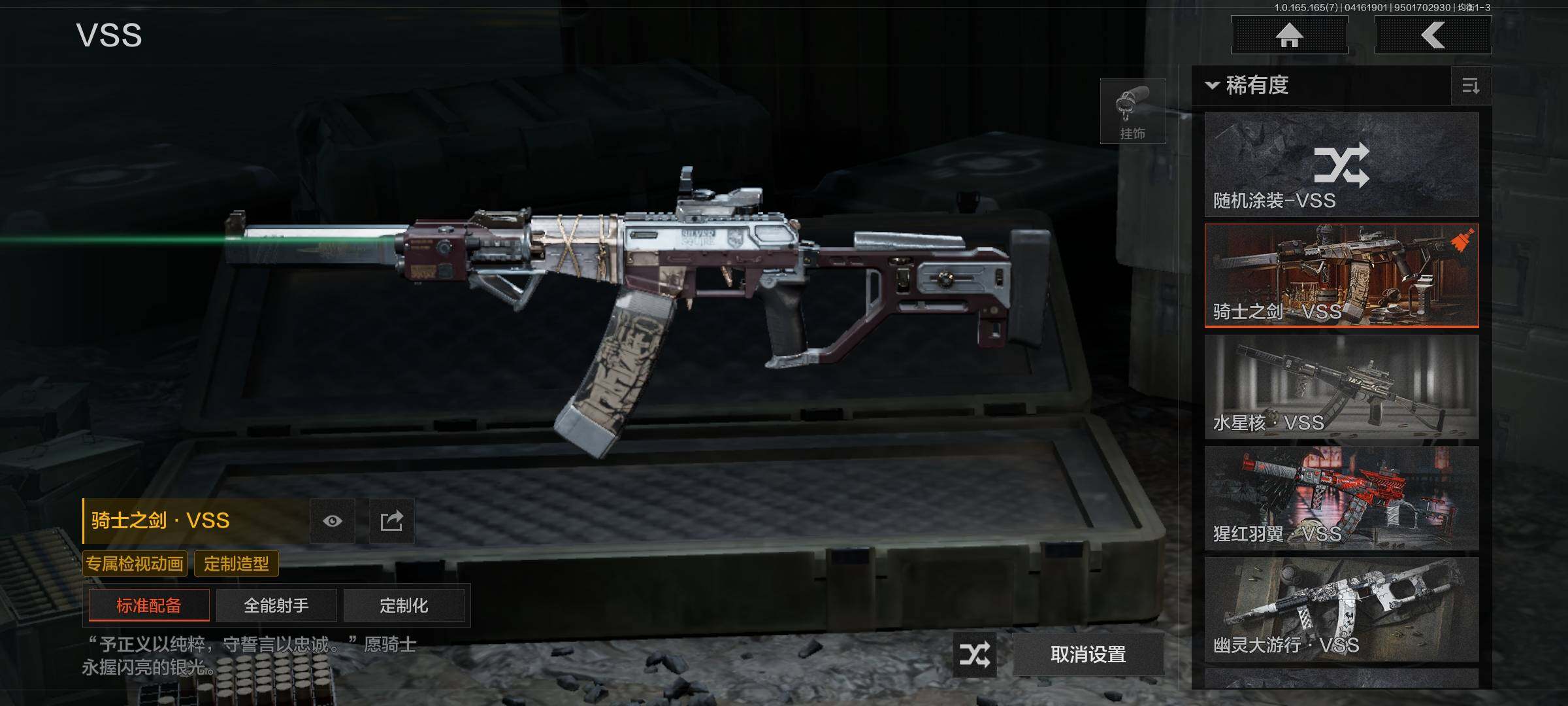 【金色枪皮】:镀火熔金H416,告丧夜曲AUG,百锻铁骑AEK,战术大师AN94,旧王圣谕QBZ191,浮鳞影青QBZ192,骑士之剑VSS,千炼铁阵MK14