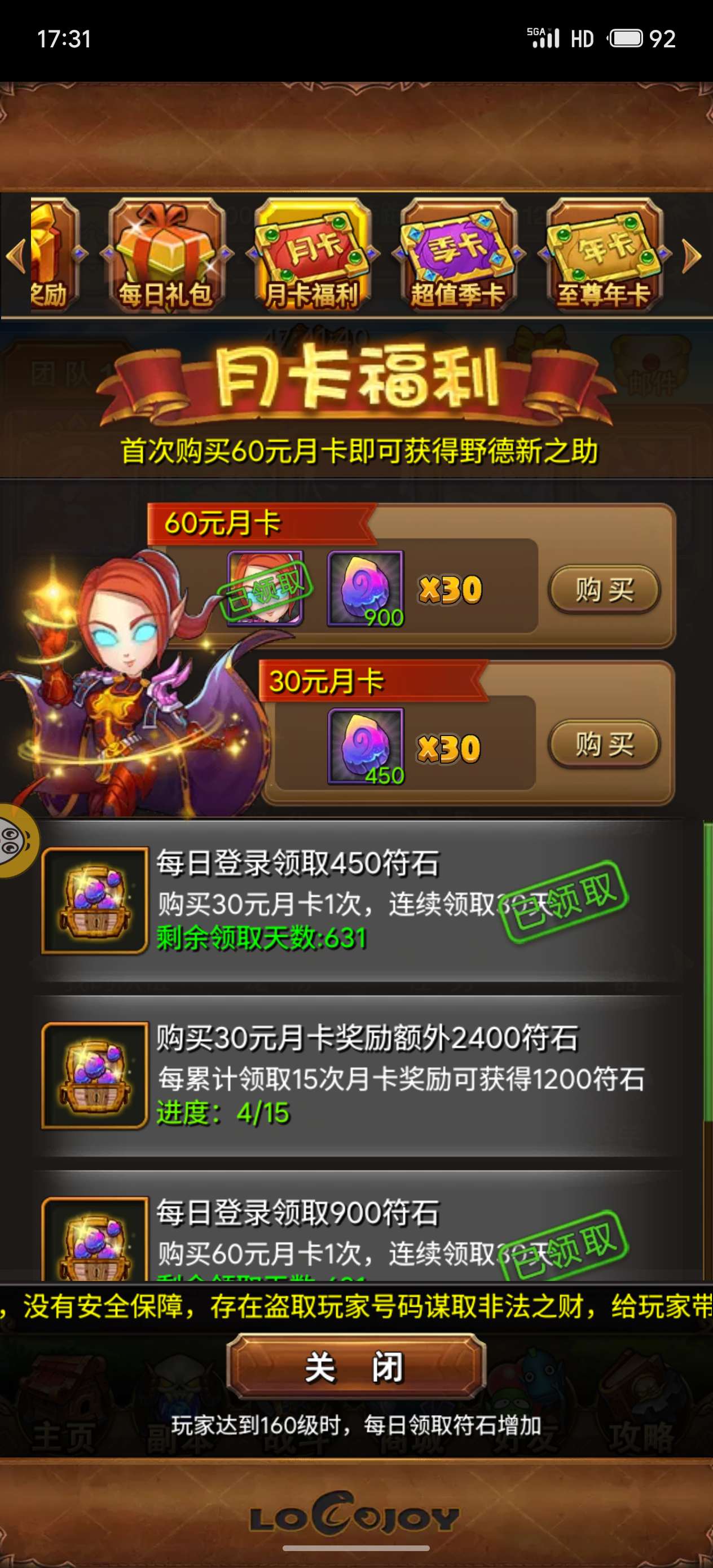 月卡充足,养老休闲2不误