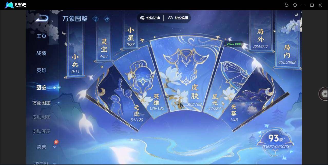 贵族等级: V9 英雄数: 129 皮肤数: 393 荣耀水晶: 全息碎影,九