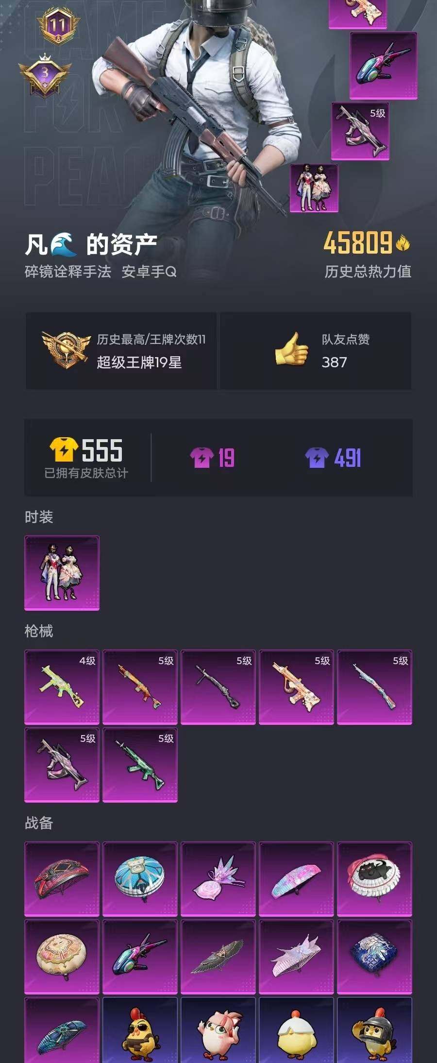 112套装/枪械7/装备188/战备108/王牌印记11/热力值45809/五