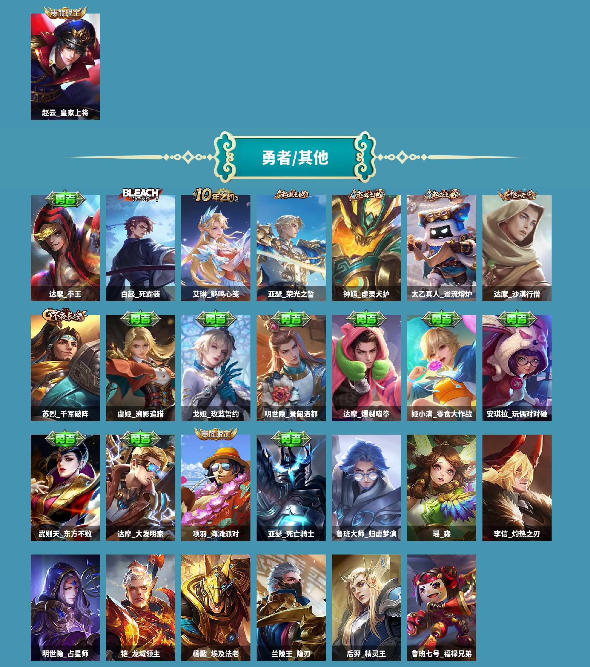 珍品传说皮肤: