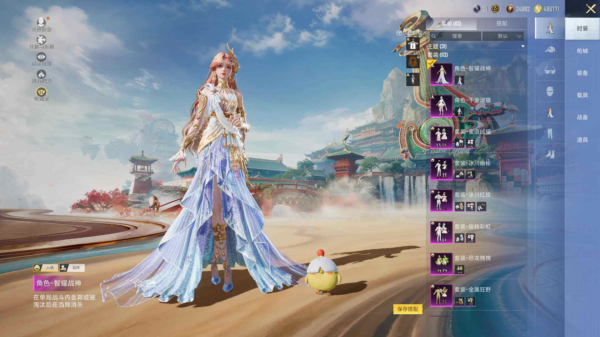 【粉色套装】:粉装-金属狂野,粉装-恐龙拽拽,粉装-旋转彩虹,粉装-冰川幽秘,粉装-冰川红玫,粉装-蜜语绒猫,角色-千金淑猫,角色-智耀战神