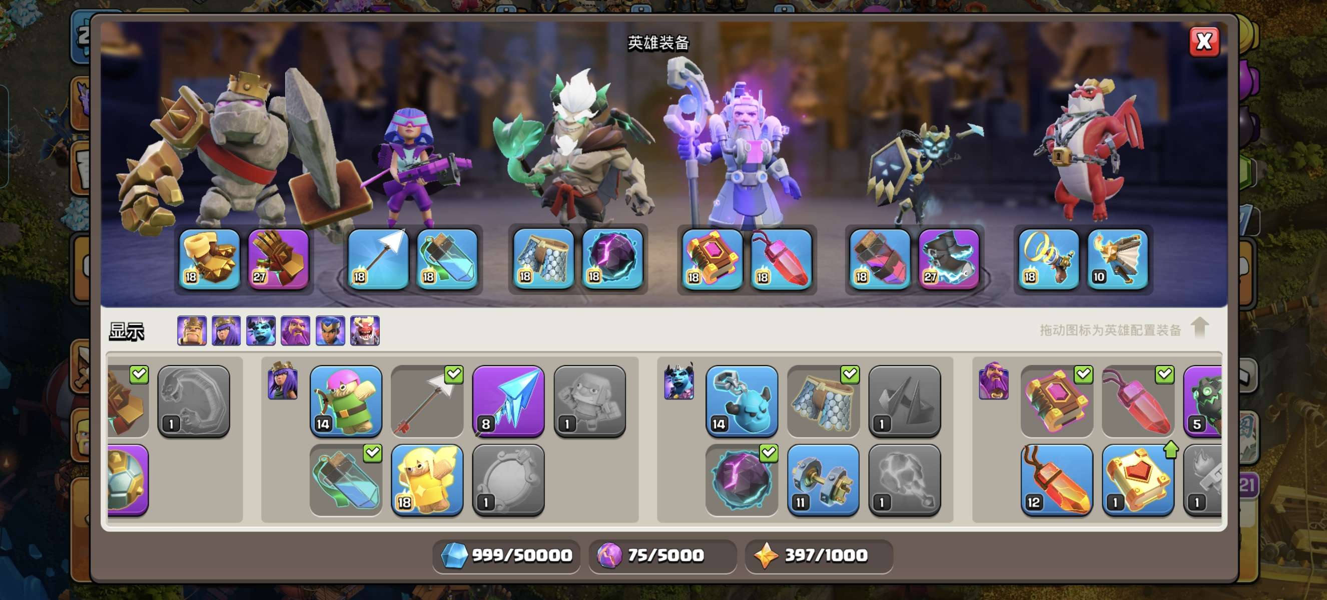 超值账号!!!17本中期-英雄等级97、100、72、56、45、10,带王者账号一起