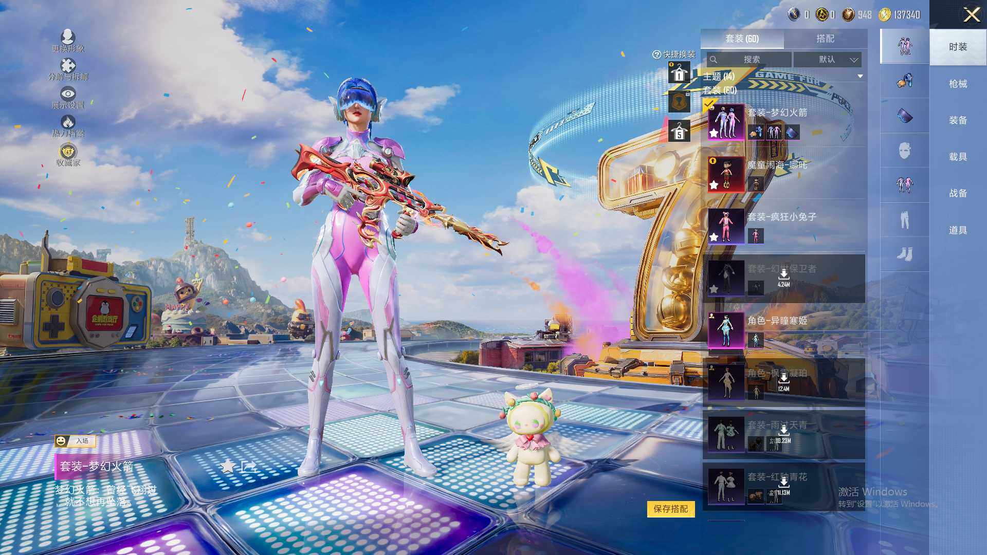 【4印记神装哪吒火箭都市小丑鱼奇异多热门装备】苹果 手Q-1神装-2粉装-6特效枪-0载具-3粉色飞行器-30970热力值-4王牌印记-60套装-94枪皮