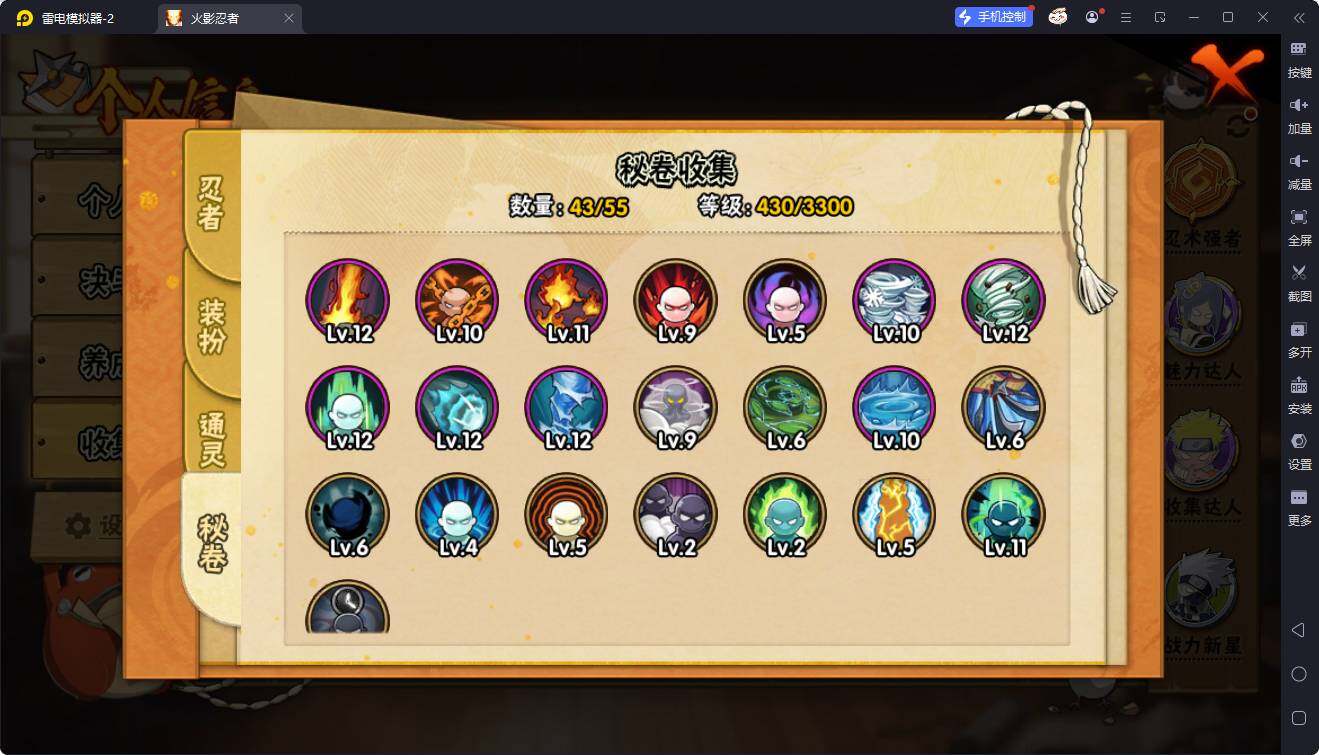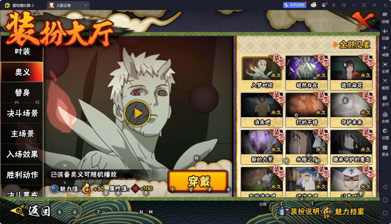 VIP等级V11/S忍数量13/A忍数量32/秽土转生-宇智波斑