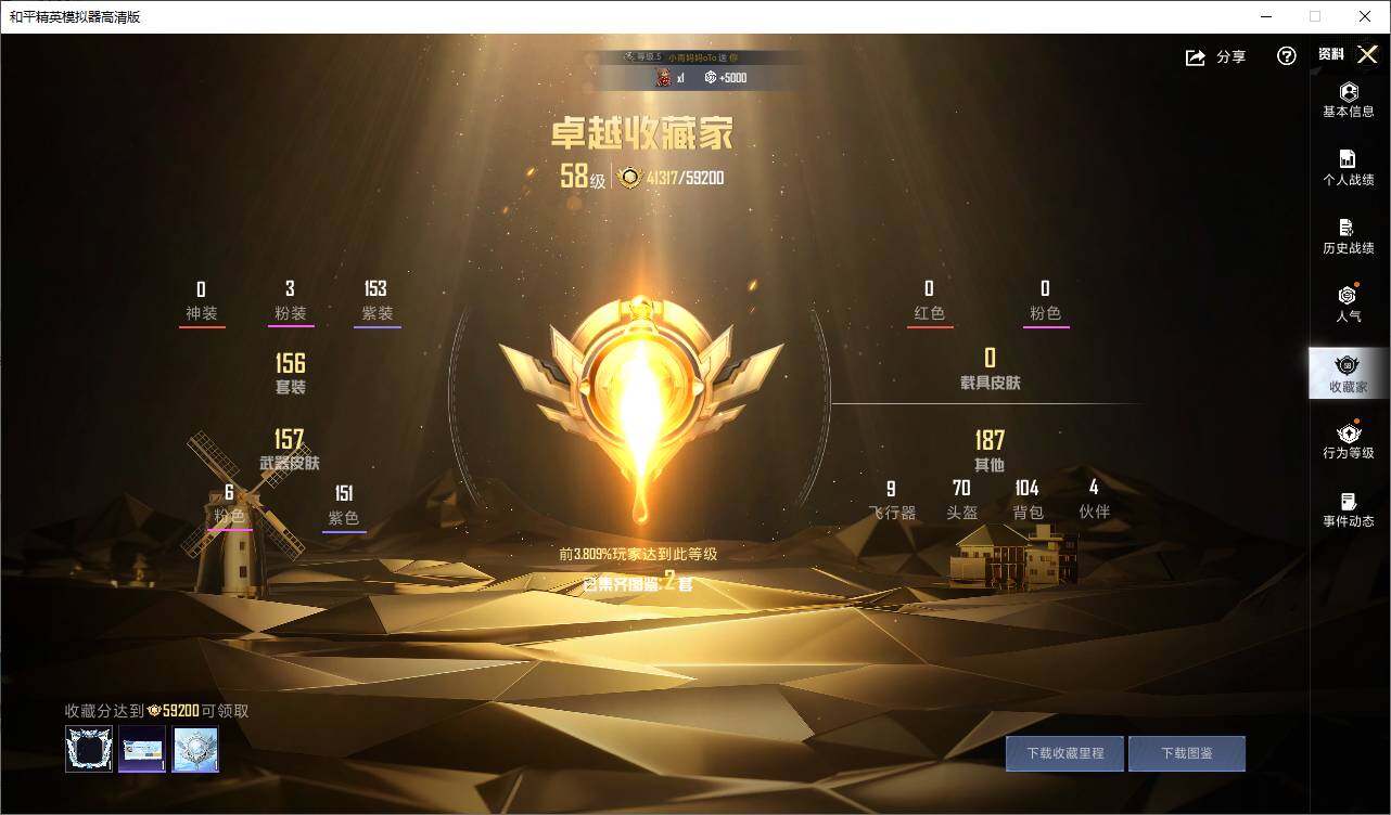 安卓 手Q-3粉装-6特效枪-0载具-3粉色飞行器-55315热力值-10王牌印记-156套装-176枪皮