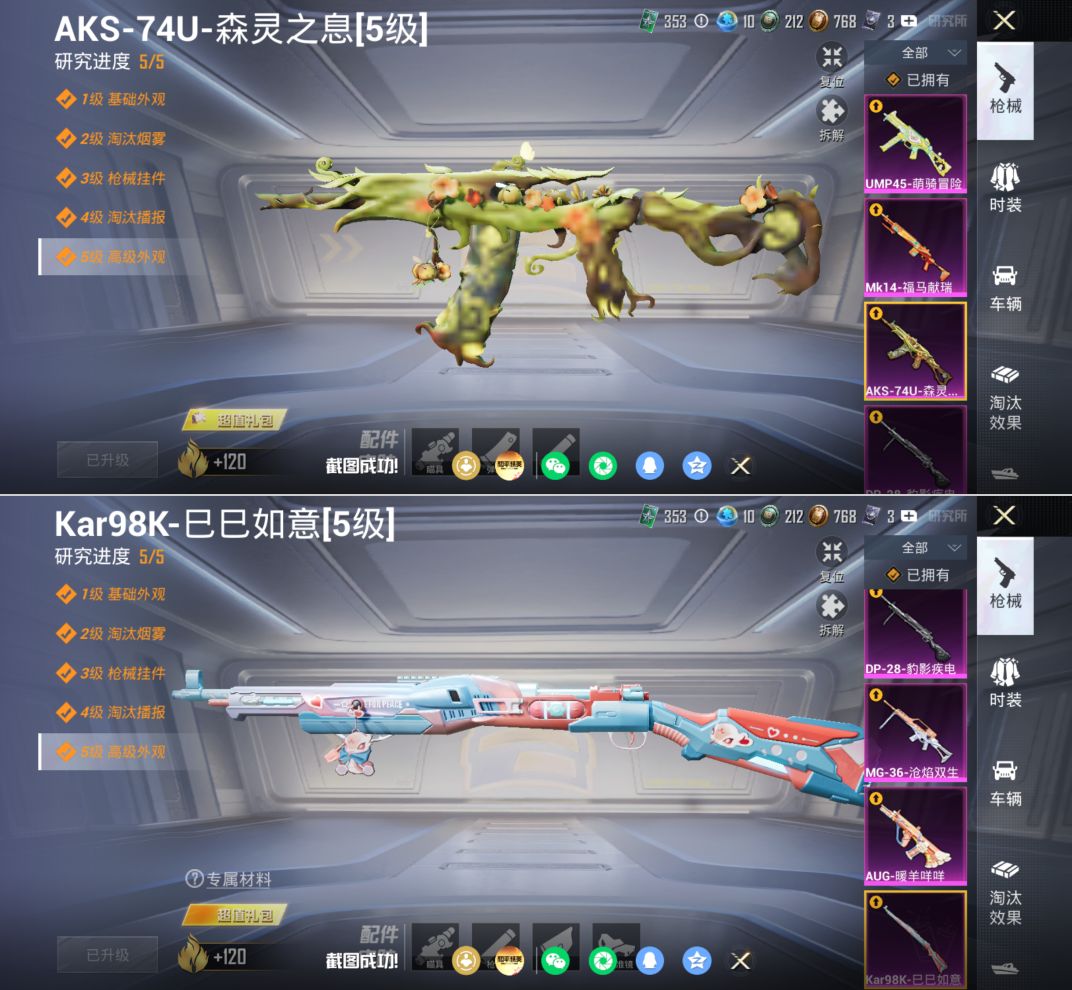 苹果手Q-2粉装-7特效枪-99套装-122枪皮-5王牌印记-不朽星钻Ⅱ-313