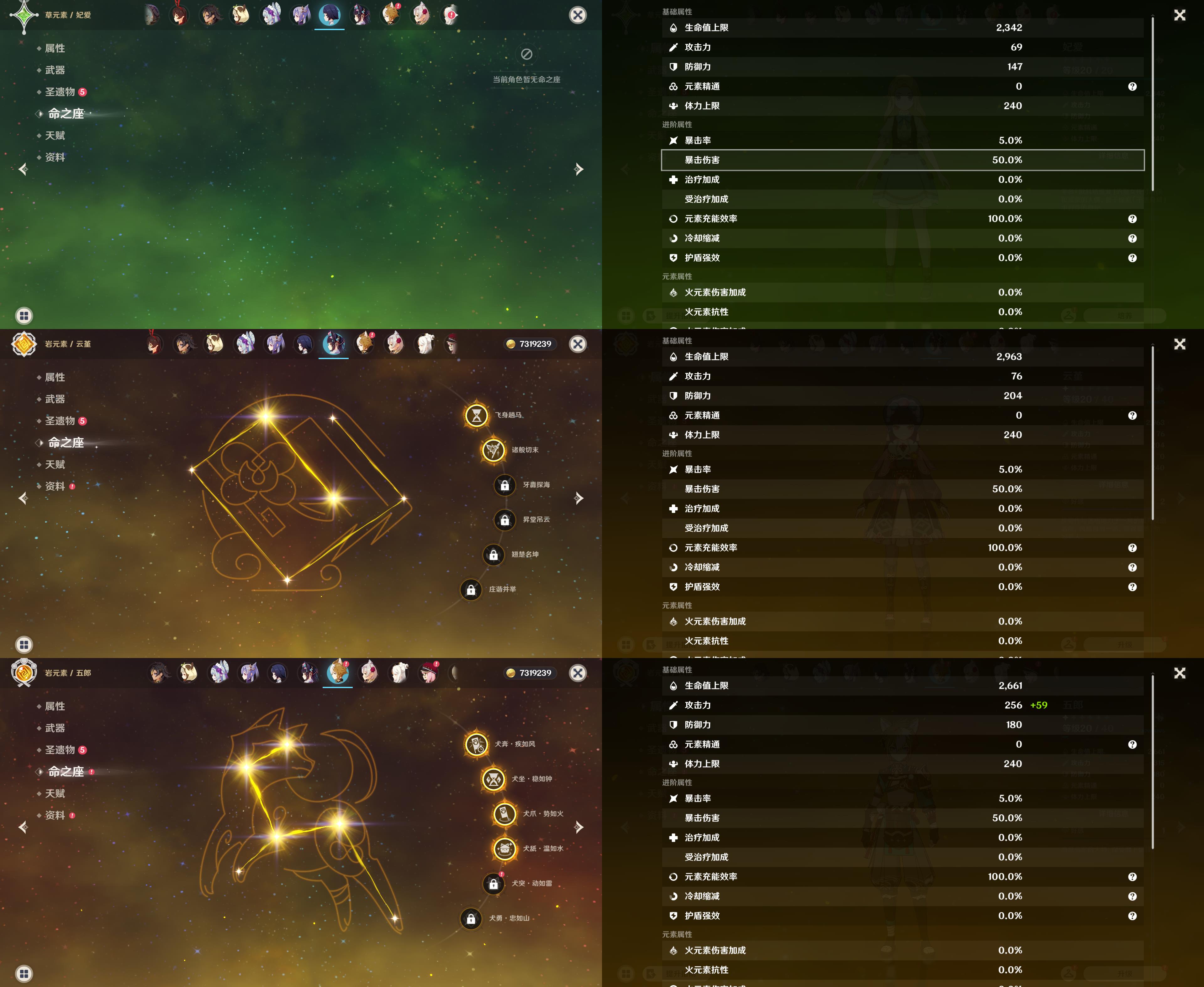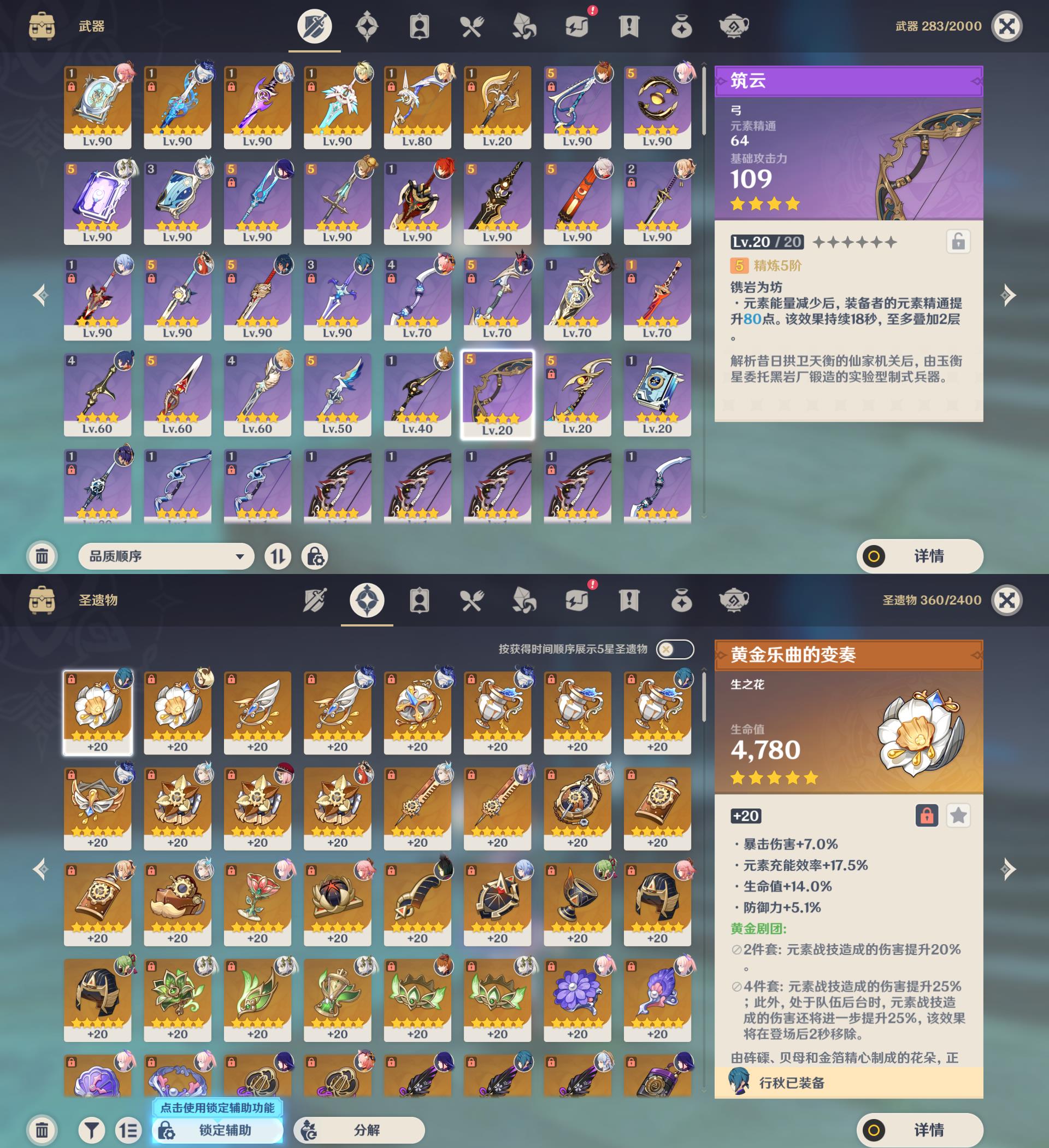 58级/36黄/女主/21个五星角色/6个五星武器/神里绫华/
