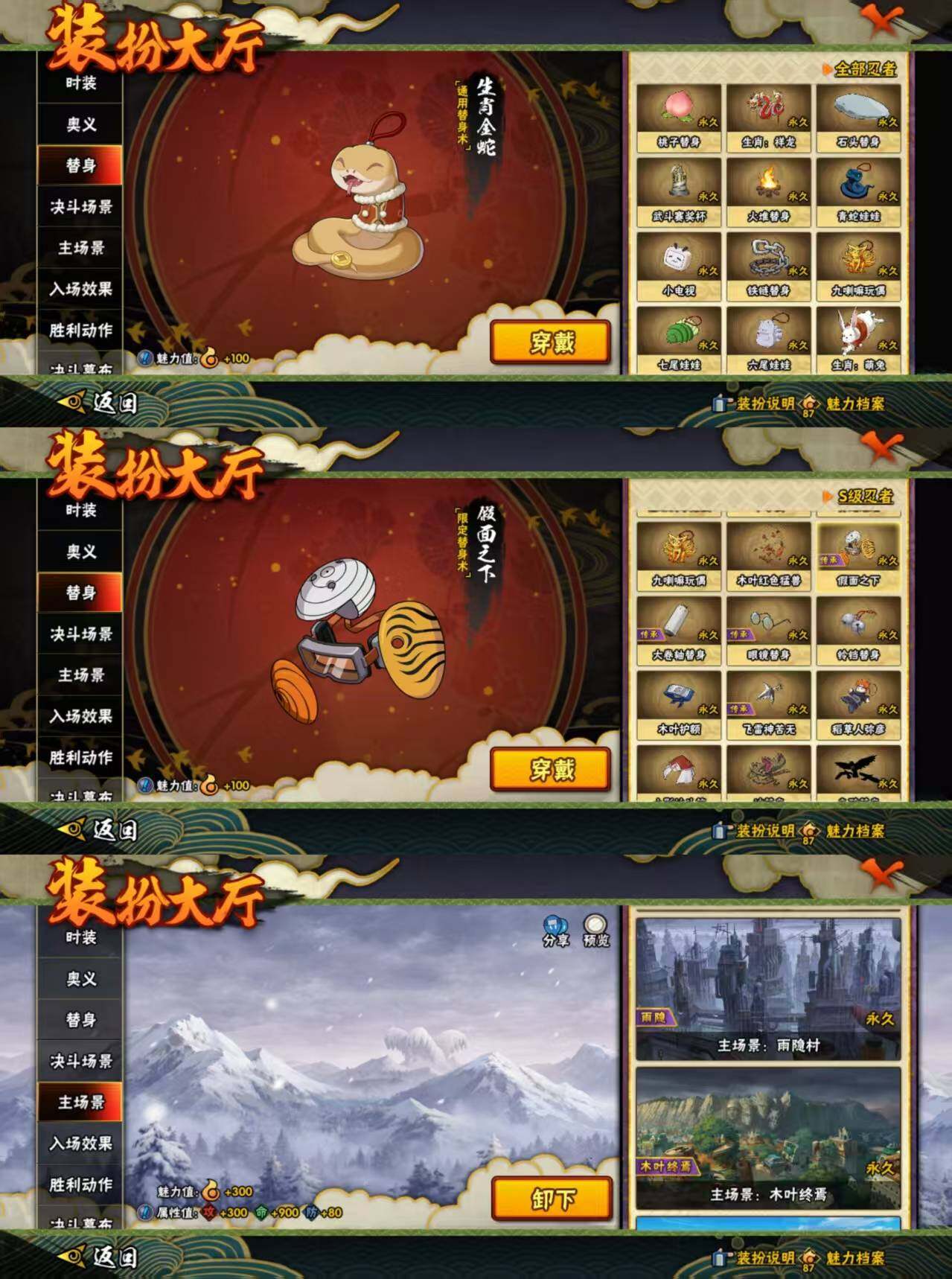 安卓Q区6304万无上忍道充值76万/本服领先750万战区领先600万战力战区碾压一组全服榜战力第8星级第15魅力榜40名26个5星S五星侠隐佐助全忍者全通灵全时装抗魔7.7万刃具藏管638万战力3076属攻挂件坠饰已精炼/魅力87级准全动态头像20个648奥义全168奥义4个648替身蛇年龙年兔替身三个648入场名片16张/永久圣诞老人冬日之星称号掠影灯河炽焰星天幕布赛季限定幕布/2万金币一年忍具卡博闻录已购