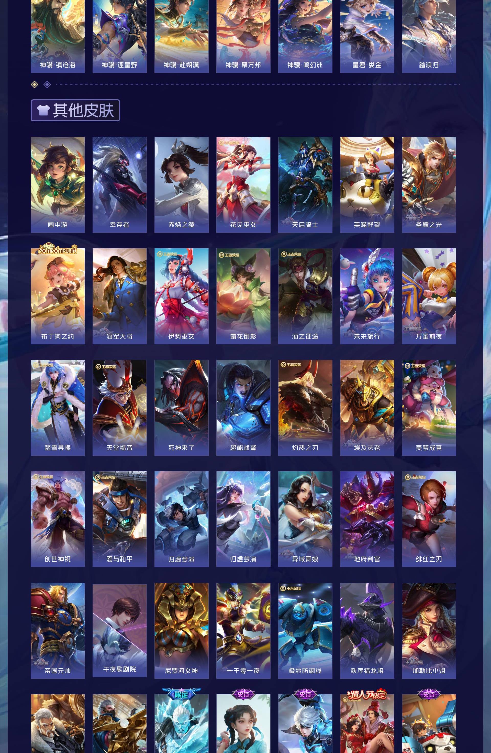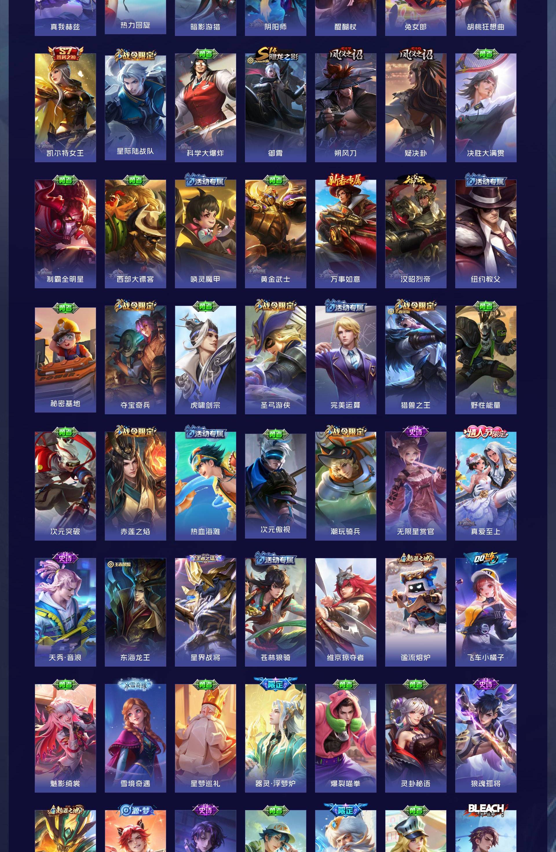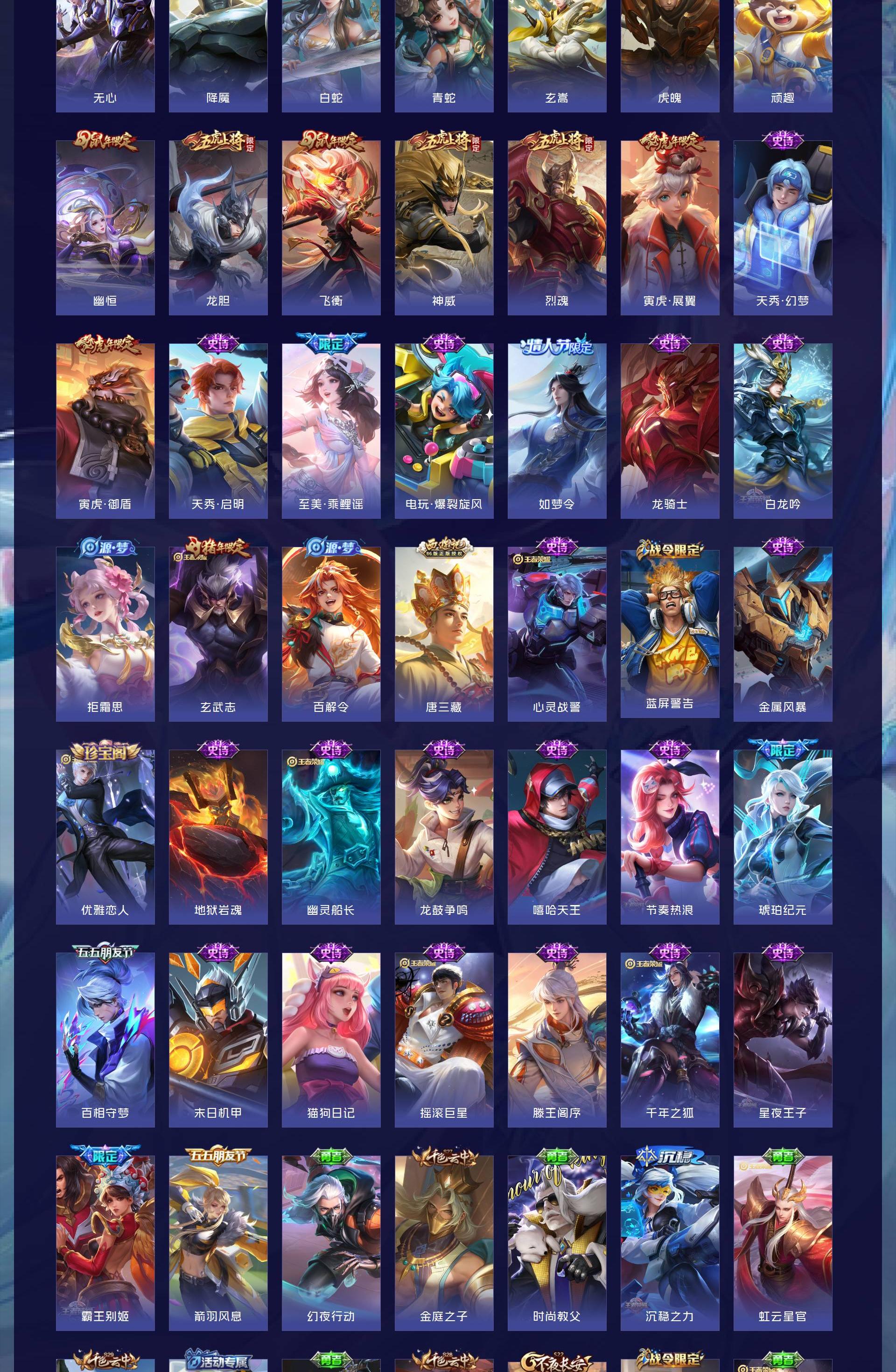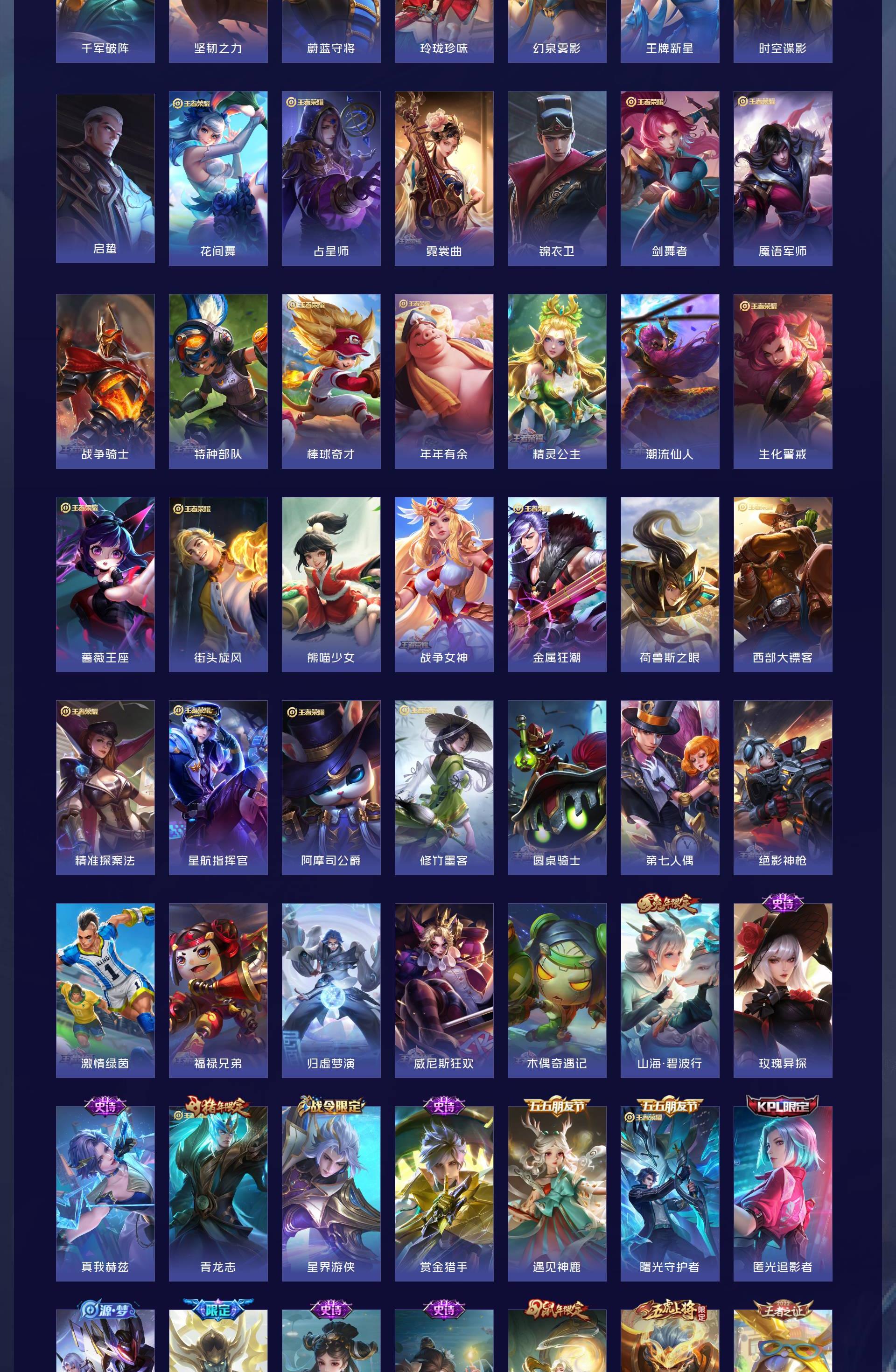 皮肤623 英雄129 永恒钻石 荣耀典藏10 无双皮肤5 珍品传说5 传说99-u绝版皮肤都有,除了梅西