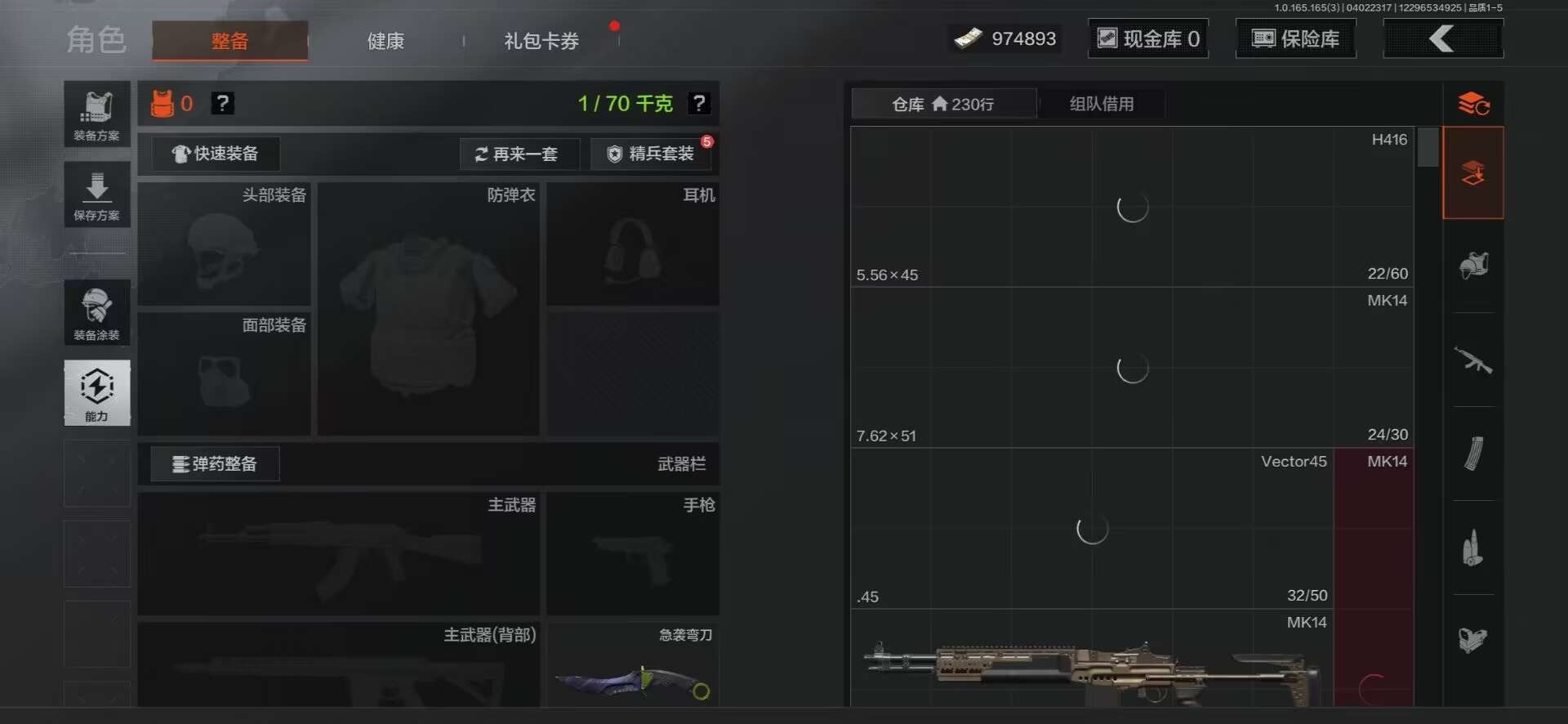 []库存价值14.5 5近战武器 1金套装 2金枪皮 可修改实名