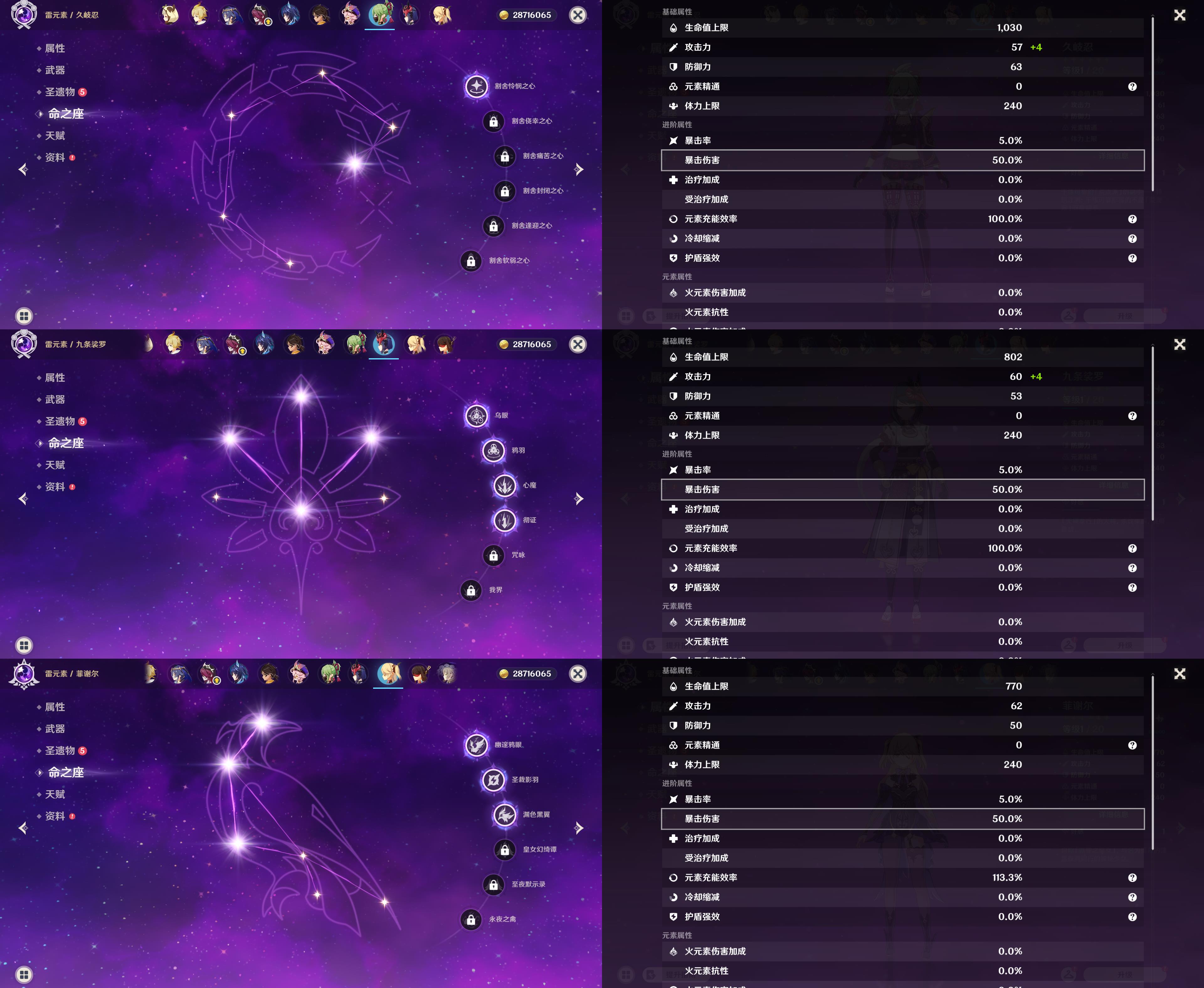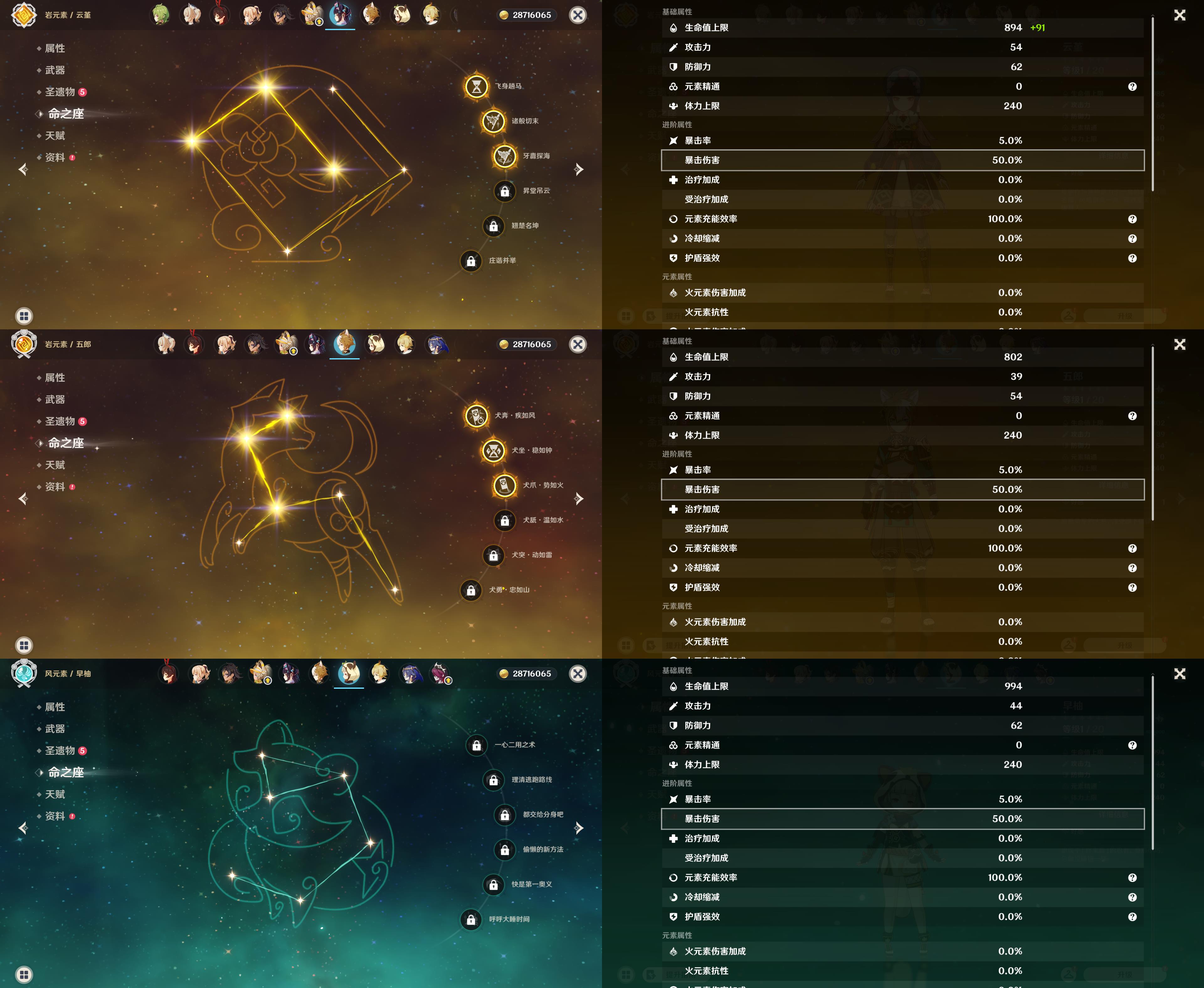 21黄/女主/17个五星角色/1个五星武器/0命瓦雷莎/阿蕾奇诺/枫