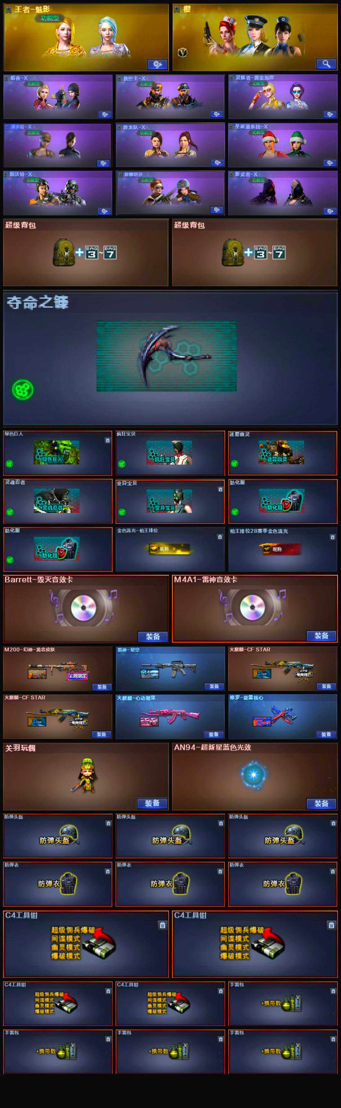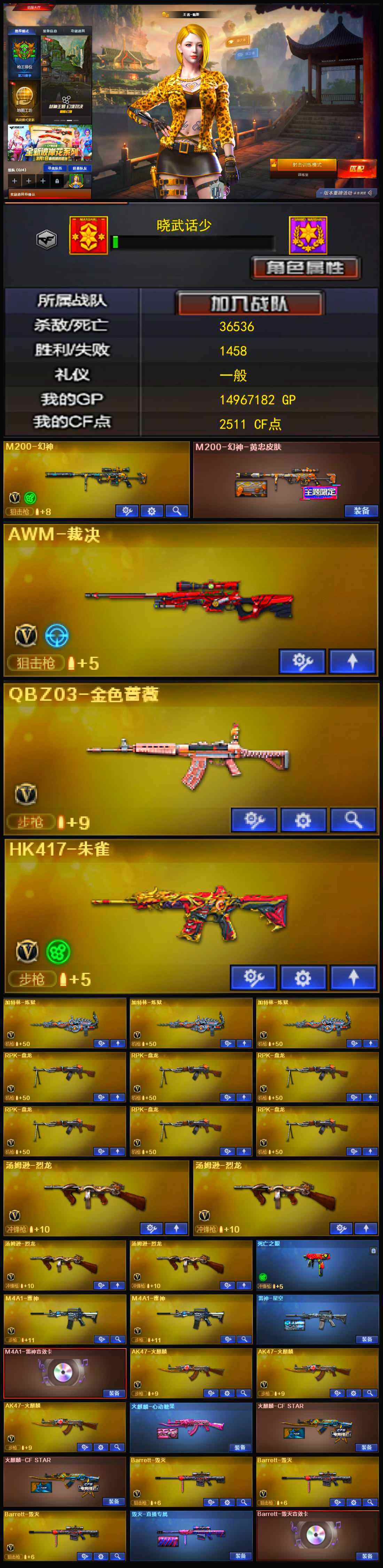 【商品标题】:江苏一区-67V-3王者-4炫金【幻神1皮】【死亡之眼】【6盘龙】【M200-幻神】【M200-幻神-黄忠皮肤】【AWM-裁决】【QBZ03-金色蔷薇】【HK417-朱雀】【加特林-炼狱】【RPK-盘龙】【汤姆逊-烈龙】【死亡之眼】【王者-魅影】【樱】【M4A1-雷神】【雷神-星空】【M4A1-雷神音效卡】【AK47-火麒麟】【火麒麟-心动糖果】【火麒麟-CFSTAR】【Barre