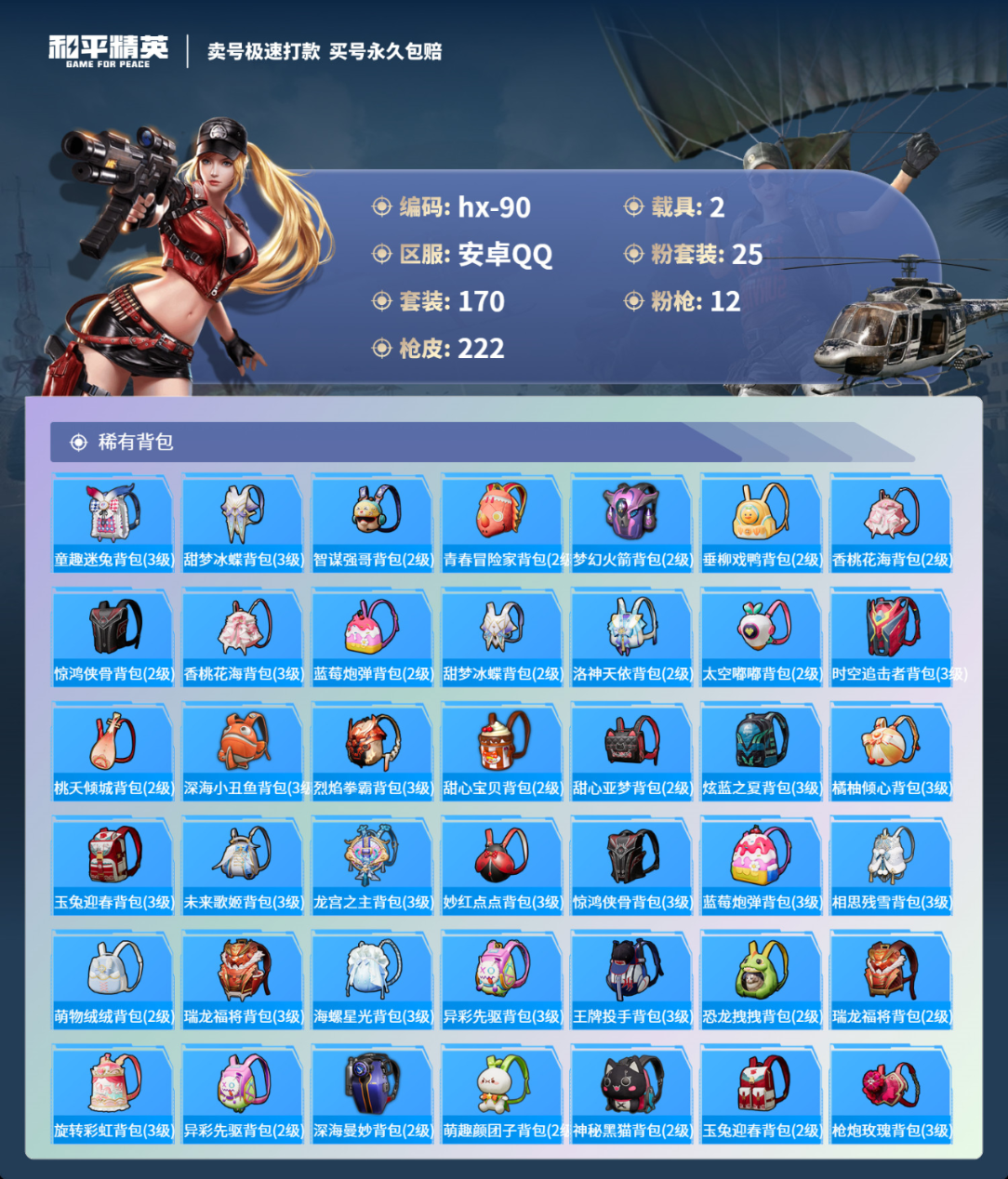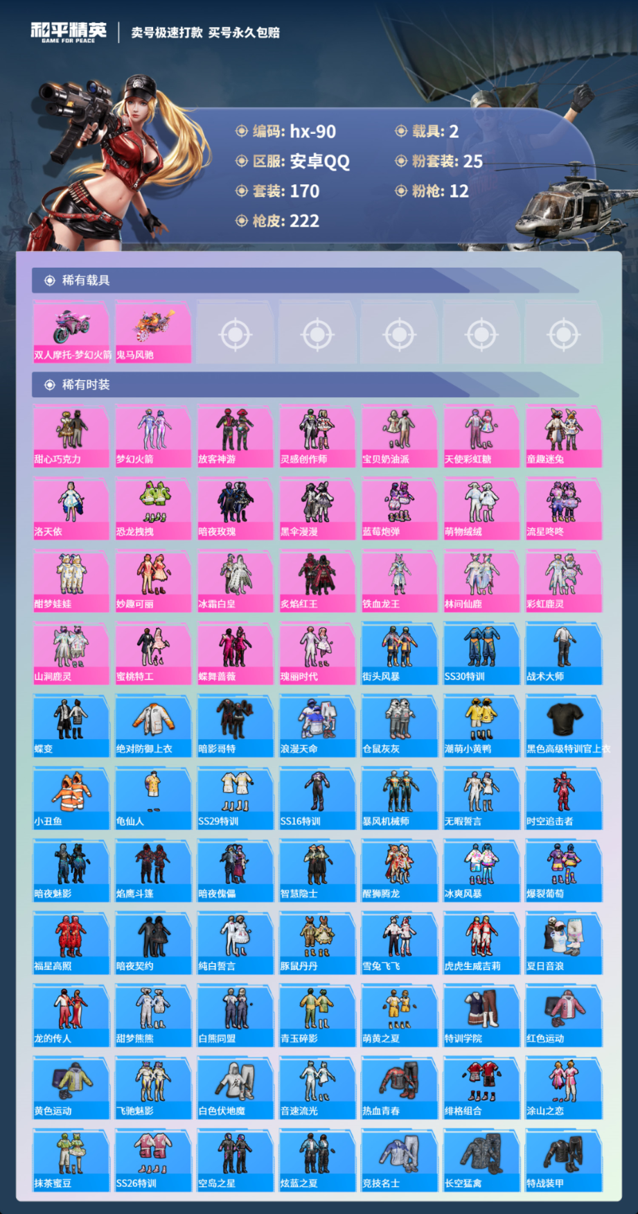 2载具170套装-222枪皮-安卓手Q-15王牌印记-25粉装-12特效枪-2载具-86794热力值-170套装-222枪皮-2卓越印记-2传奇印记
