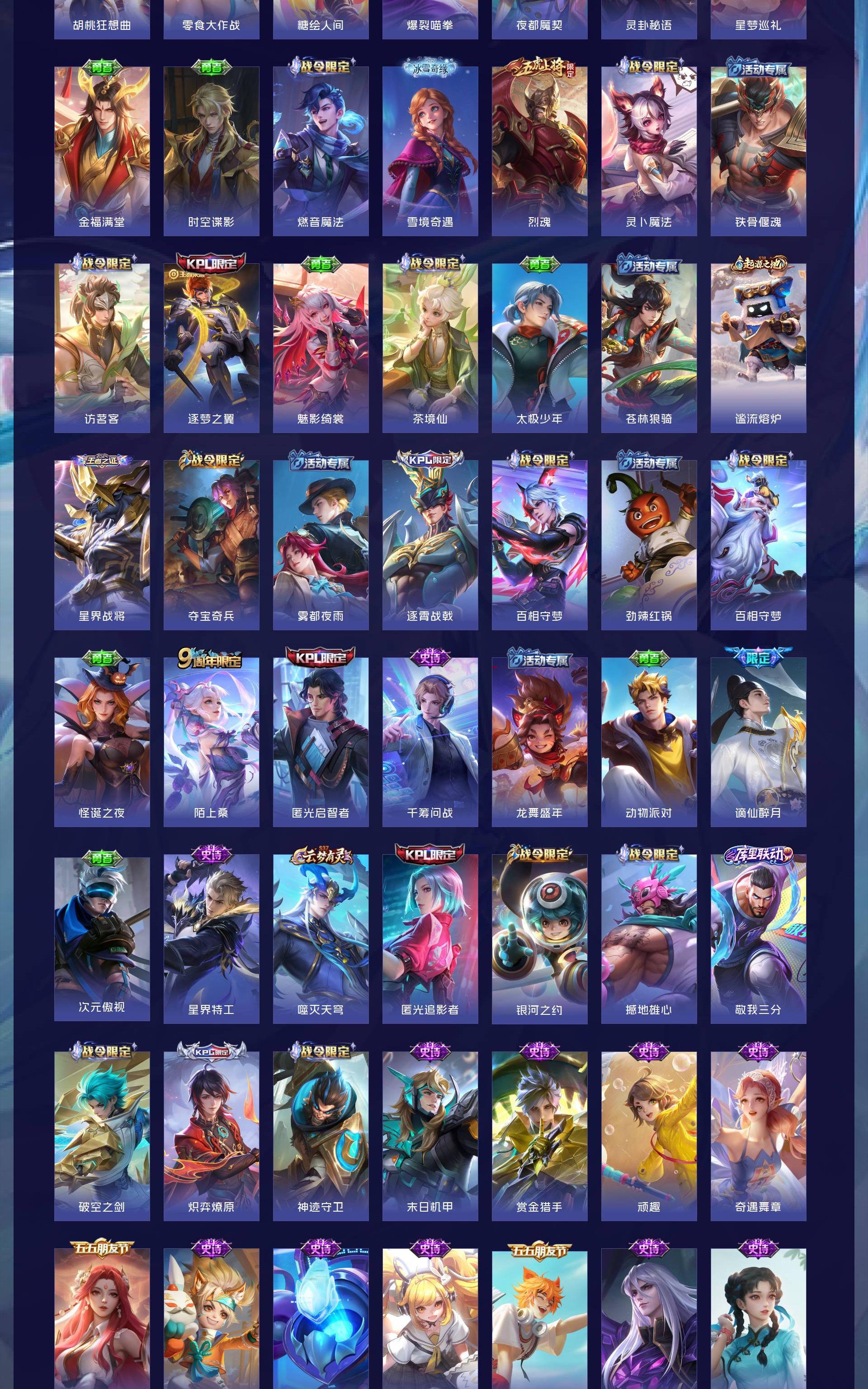 V10 皮肤494 英雄130 永恒钻石 荣耀典藏8 无双皮肤5 珍品传说3 星传说5 传说44