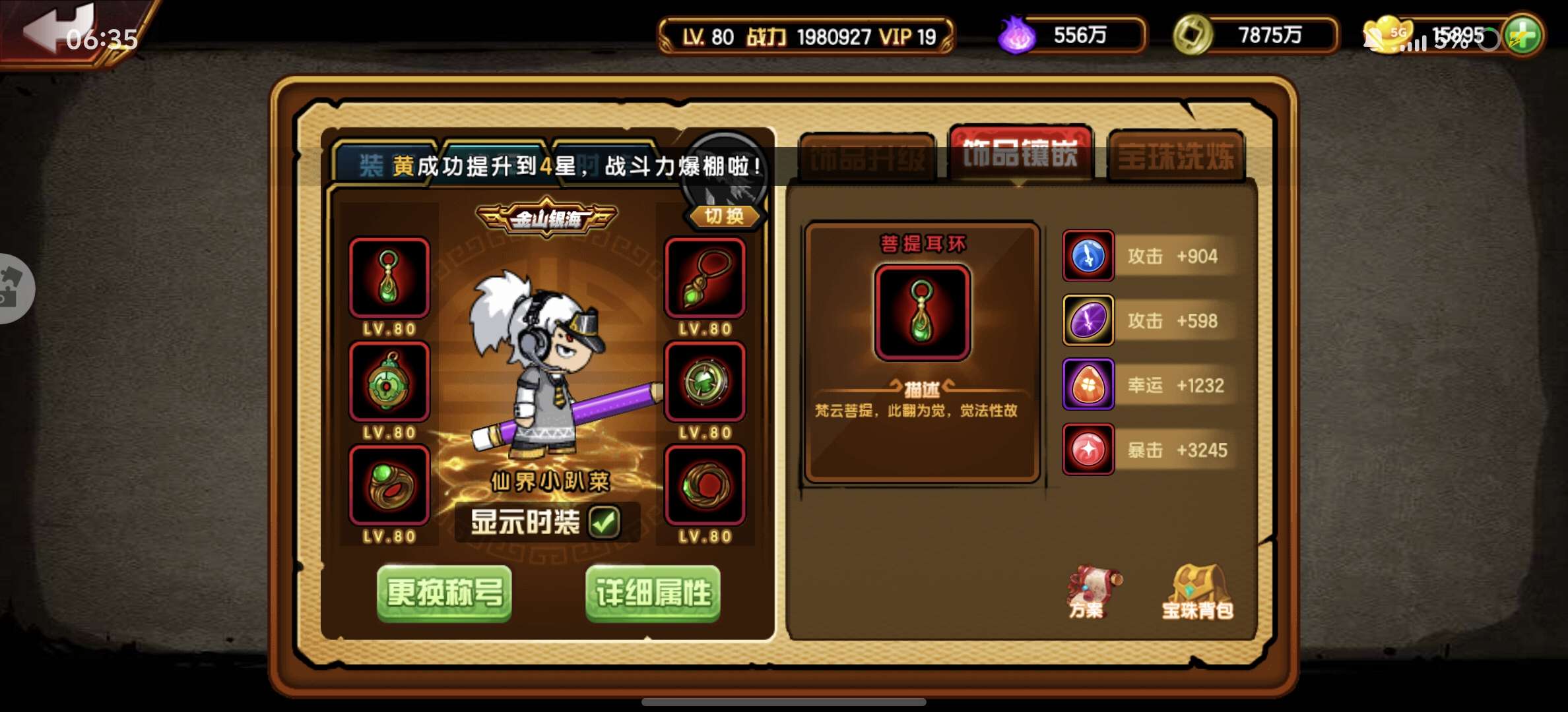 准200w,属性很好,宝石珠宝不错,灵纹拉满还能加很多,下次出红翅膀,马上VIP20全活充值有优惠,