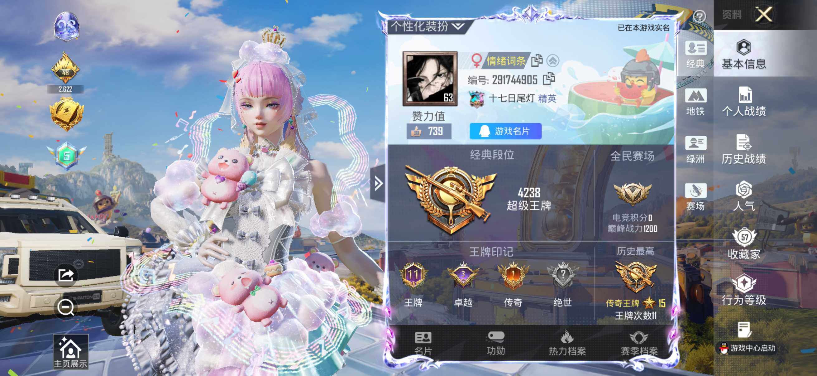 【AZH3703】苹果 手Q【虹云熊熊 极致幻想 满级梦之光华AKM 心之恋语M416 1载具】7粉装-6特效枪-1载具-2粉色飞行器-50477热力值-11王牌印记-103套装-165枪皮
