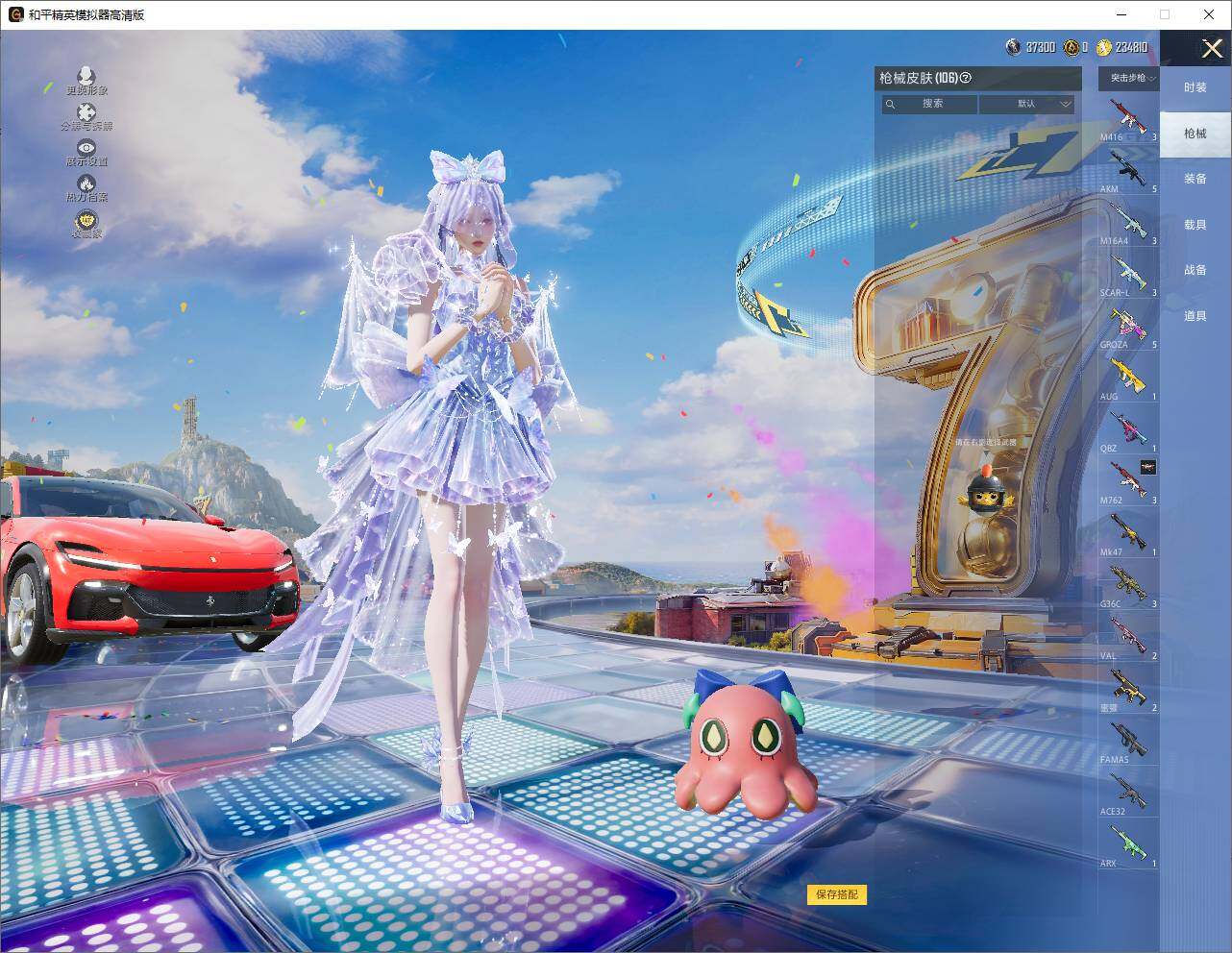 【双字id:胜右】安卓 手Q-1神装-0粉装-3特效枪-3载具-4粉色飞行器-