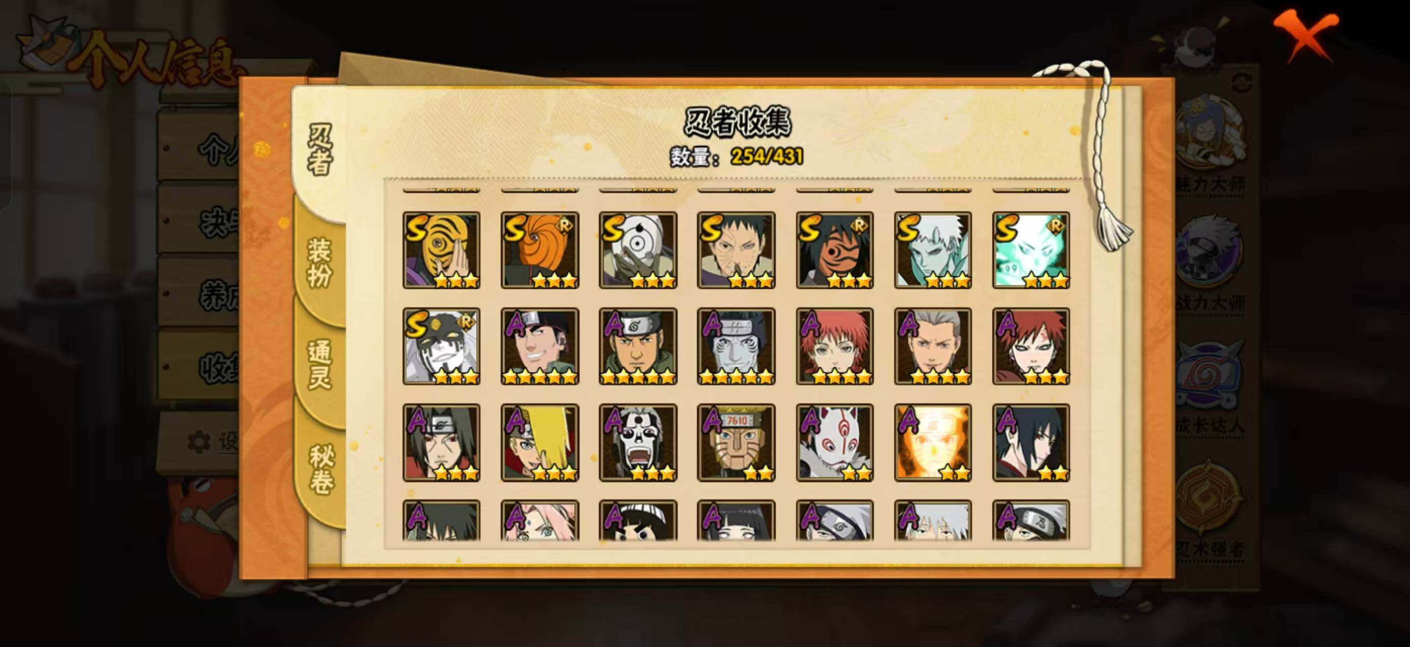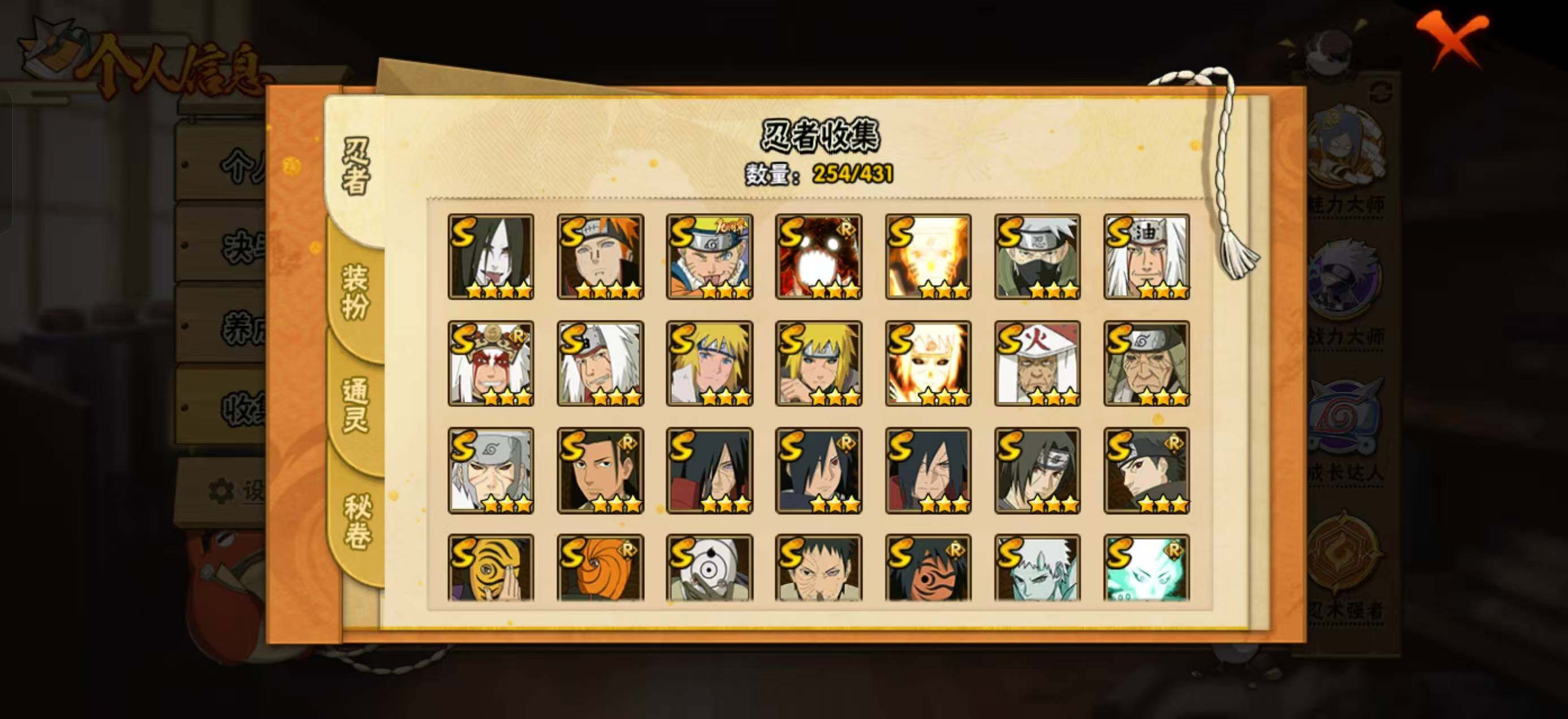 【S级忍者】:猿飞日斩「秽土转生」(3星),波风水门「秽土转生」(3星),千手扉间「秽土转生」(3星),宇智波斑「秽土转生」(3星),宇智波斑「秽土转生·解」(3星),宇智波带土「忍界大战」(3星),宇智波鼬「须佐能乎」(3星),宇智波止水「须佐能乎」(3星)