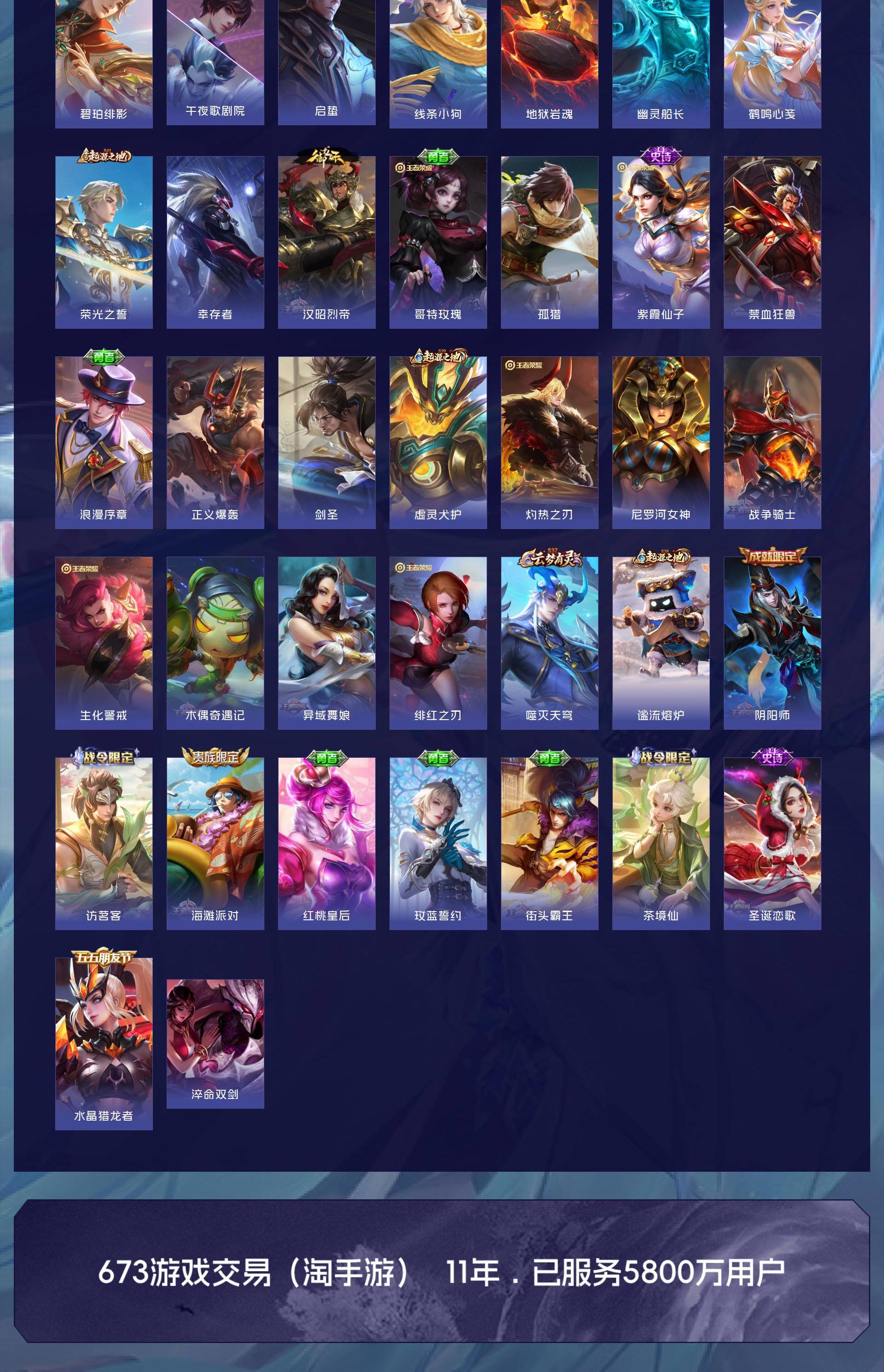 超多精品皮肤,韩信荣耀典藏、露娜世冠、达摩狮子座、宫本星传说都有