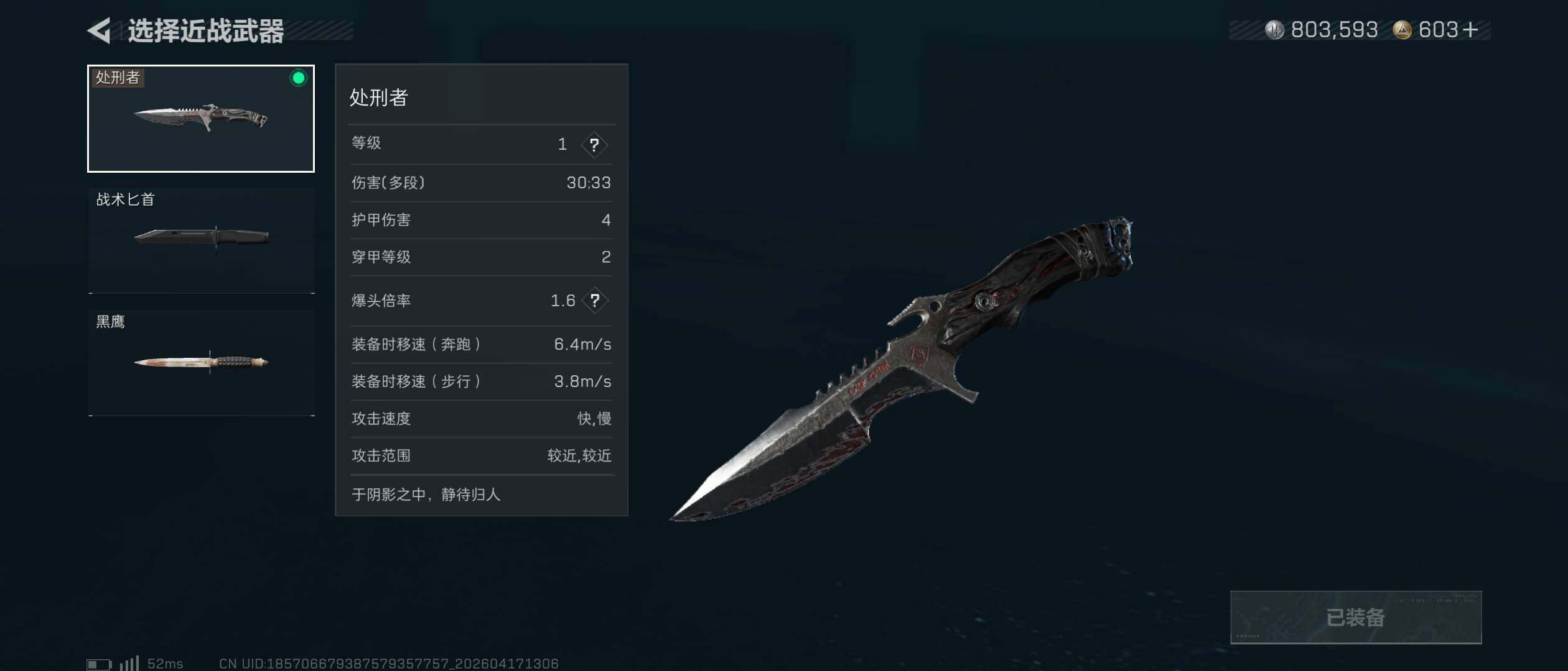 【近战皮肤】:近战-处刑者1级,近战-黑鹰