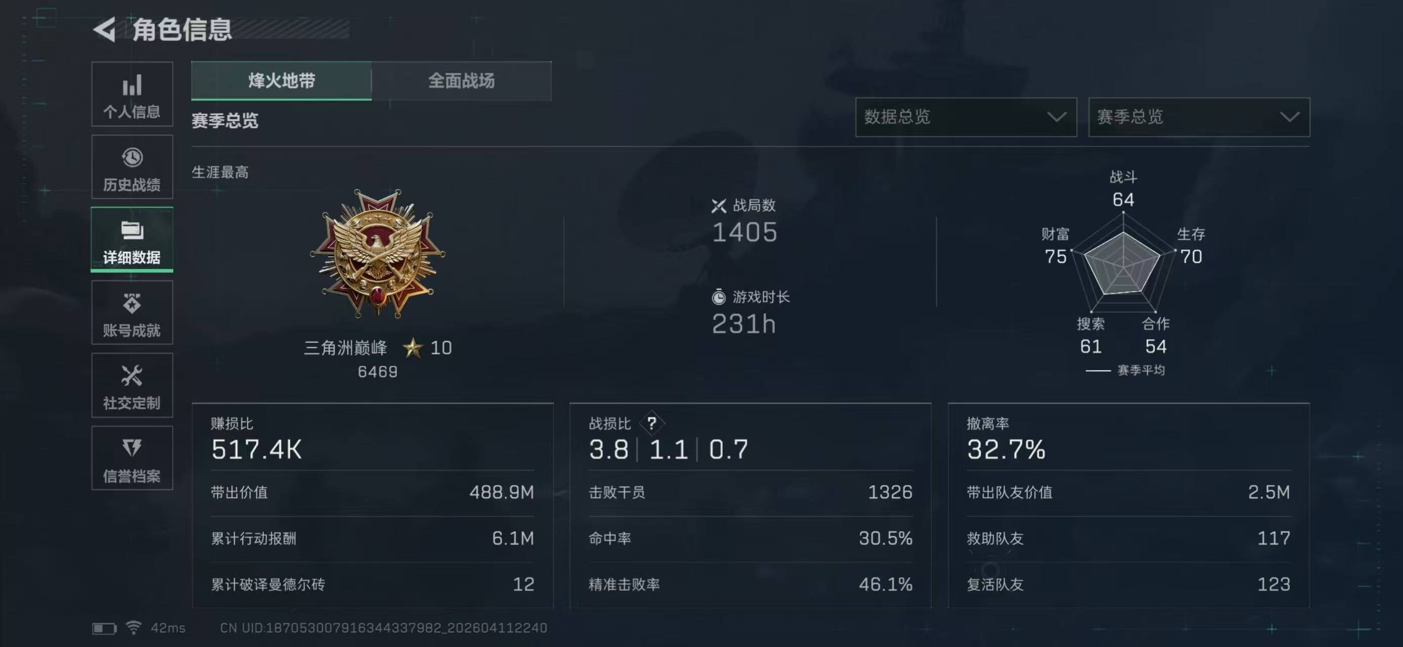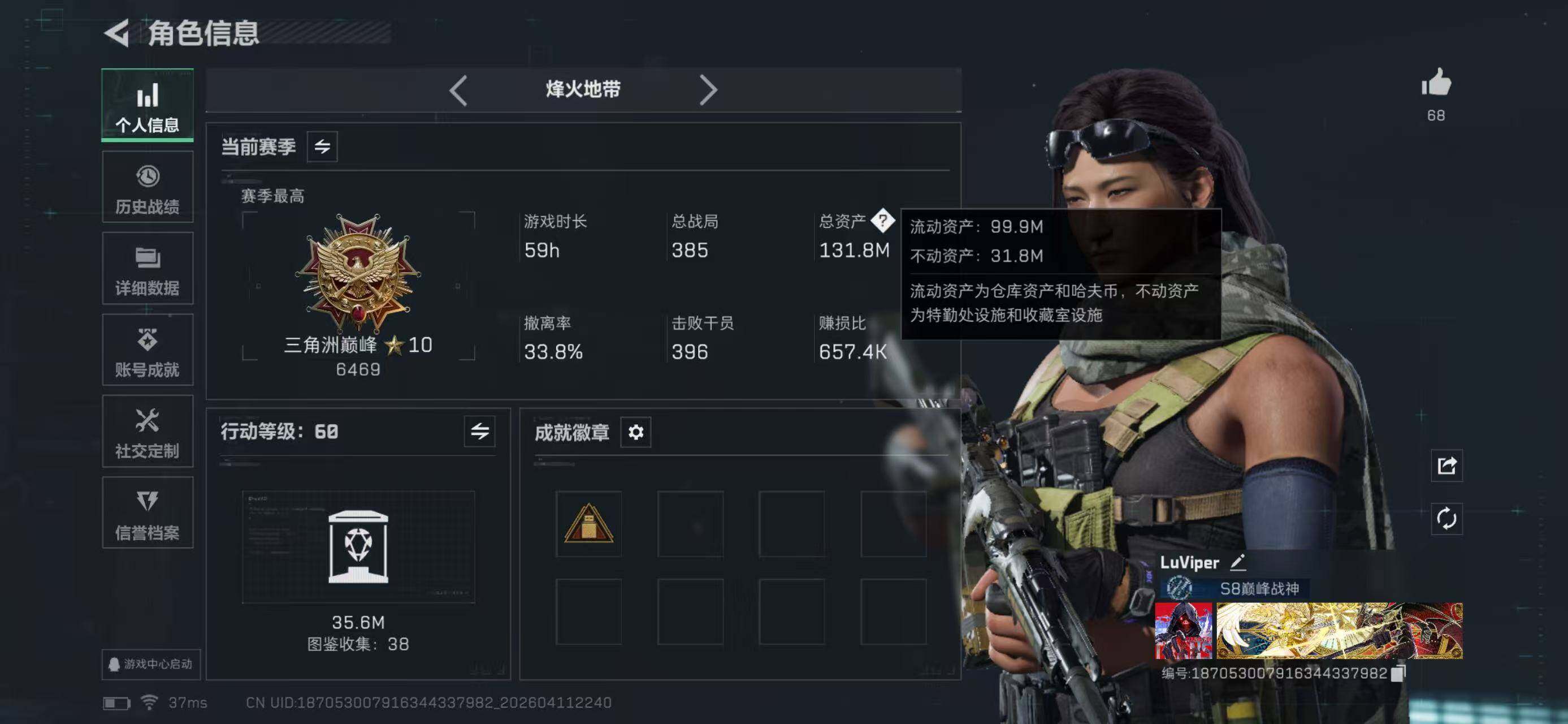 【3109】总资产132M/哈夫币386万/行动等级60/安全箱等时效性道具以