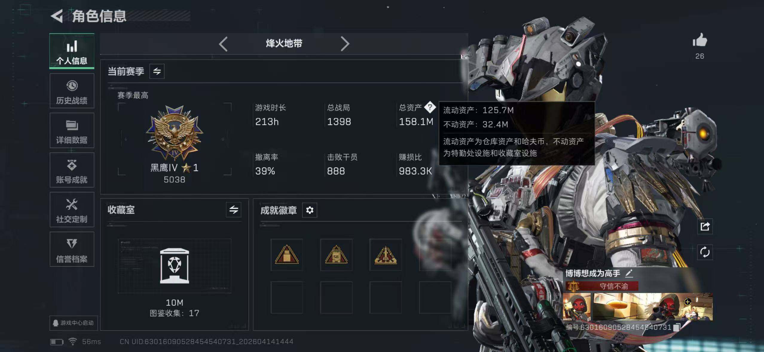 【SJ1753】159m总资产-85910k哈夫币-60烽火等级-铂金-23战场等级-上等兵