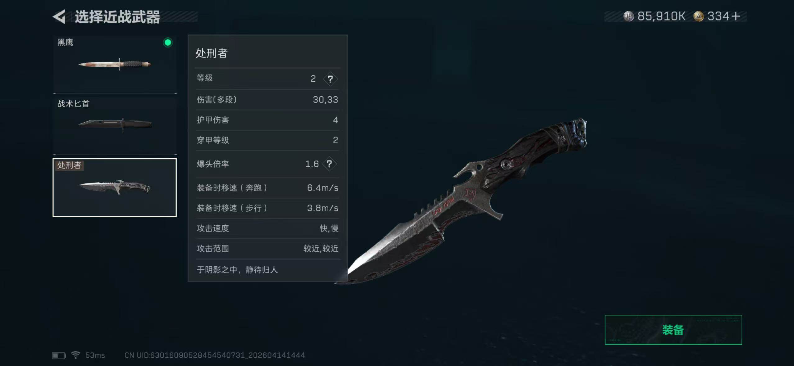 【近战皮肤】:近战-处刑者2级,近战-黑鹰