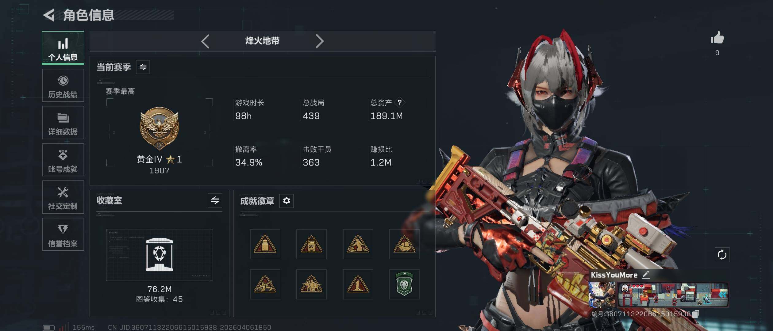 188m总资产-17900k哈夫币-60烽火等级-白银-48战场等级-列兵