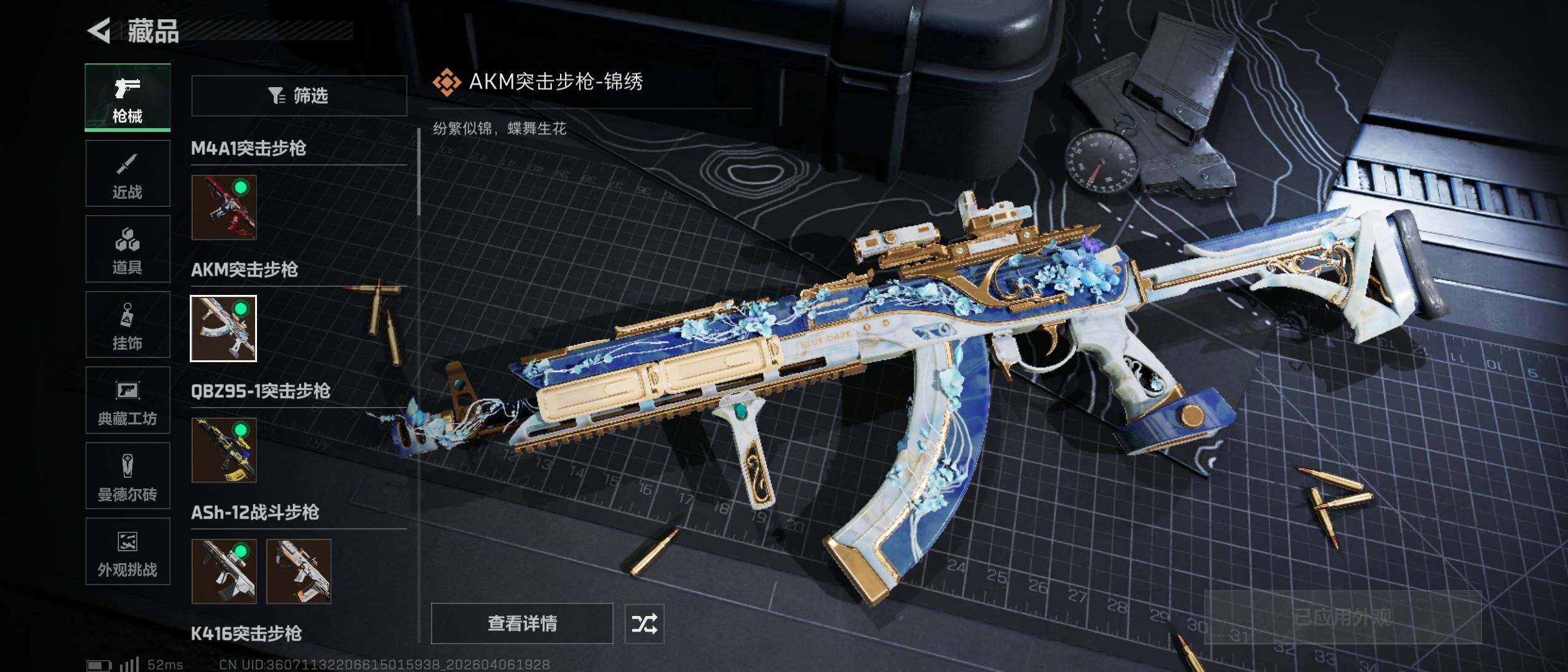 【传说外观】:M4A1突击步枪-阿米娅,AKM突击步枪-锦绣,QBZ95-1突击步枪-深海,ASh-12战斗步枪-怜悯,ASh-12战斗步枪-鹅鸭杀,K416突击步枪-行动记录,AUG突击步枪-悠然茶歇,SCAR-H战斗步